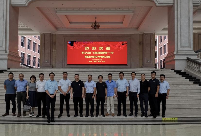 2019年9月2日下午, 科大讯飞股份有限公司副总裁兼西南总部总裁娄超、智慧城市BG执行总裁尹大海、人力资源部总经理李剑峰、人力资源部副总经理何菁、西南总部副总经理魏星、西南高教运营总经理杨洋等一行领导莅临重庆工商大学融智学院进行考察交流,共商双方的产教融合事宜。