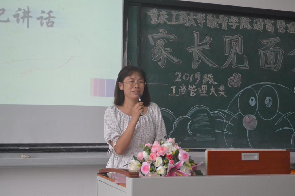 会议伊始,赵娜副院长对家长们的支持与信任表示了感谢,并针对工商管理大类专业情况、学院定位培养以及“财商”培养教育理念等方面向新生家长们进行了介绍,获得了家长们的一致认同。紧接着,宋钰静副书记在讲话提到了三个不同:学习方式的不同、学习环境的不同,学习者角色不同。她提到,大学相较于高中学习生活有很多不同,希望新生们及早转变自己的角色,学会自我管理,多参与学校组织的各类实践活动,提升自我综合能力,做好大学四年职业生涯规划。随后,专职教师唐莉、杨国庆、余天霞、向丹分别对财务管理、资产评估、物业管理、国际商务四个专业的发展及就业前景进行了详细的介绍,让新生及其家长们对学院各专业有了一定的了解。在新生辅导员李秋河和左小容老师做了简单的自我介绍后,他们表示,希望家长朋友们能和老师多些沟通与交流,共同促进同学们的成长。在最后的答疑环节中,家长们积极提问,老师们认真作答。在这一问一答间,家长们心中的困惑得以消除,增加了对学院的信任,对孩子未来的发展也愈加有信心。