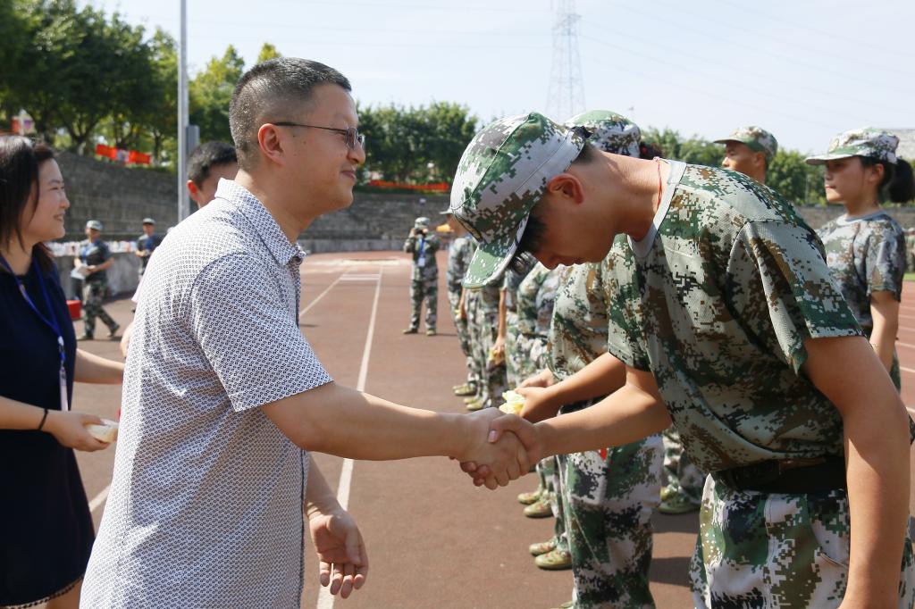 “军训是步入大学的第一堂课,是锻炼个人意志,提高个人组织性、纪律性的良好机会”吴校长就军训情况对同学们提出期望,希望同学们在接下来的训练中配合教官,以积极的态度顺利完成军训。