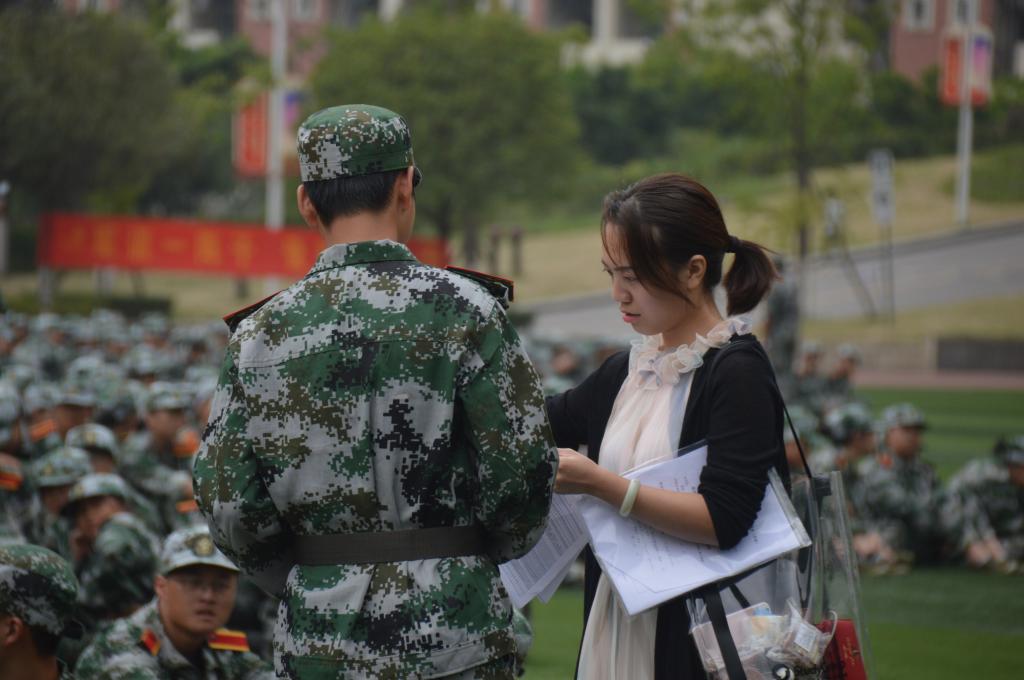 无论烈日还是风雨,手抱文件夹,踏着稳健的步伐,每天按时到点签到的是你;对伤病的同学进行细心地询问与照顾,让远在他乡的同学感受到了特别的温暖,在还有冷空气弥漫的空中增添了一份热情的是你;随时在班群里动态,督促同学们填写各种文件,为他们讲解问题的是你;对雨中训练的同学带去安慰,为他们集体购买雨衣,为他们擦拭被雨水侵打的脸庞的是你;对态度不认真,训练不刻苦的同学进行心与心的交流,鼓励他们积极面对军训任务的是你;时不时来到寝室询问同学的情况,问候同学们能否适应离家的生活,给予他们温暖的拥抱的是你。师者之爱无私而严谨,化作春泥养育万物。