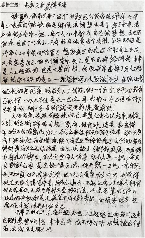 接着,陈方舟博士从人工智能角度入手进行职业生涯规划解析,指出人工智能行业的发展正处于可以顺势而为上升周期,谈到探索的黑盒及其美国与中国在人工智能领域各自的优点与积极做法;再到在AI环境下必将催生出的各种前景良好的职业方向;从而引出从大学生如何具备更强的核心竞争力和职业素养的角度,传达了打好大一基础课程,积极参加创新创业比赛,努力提升自我效能感和自身不可被取代性的学习建议与要求。不仅让同学们明白了意识的重要性,同时也认识到自身能力有待提升,进而激发了同学们对自己的未来的信心,也明白了大学需要从大一开始就要做好职业规划,为未来的发展打下坚实的基础。