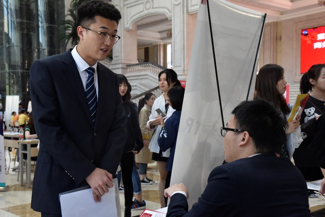 商务学院2020届国际经济与贸易专业李华远同学在采访中提到自己投出了3份简历,希望通过本次招聘会可以找到自己满意的工作,之前利用寒暑假时间在北京、重庆等地实习经历给自己的应聘增色不少。他也提到临近毕业,同学们各自有打算,有的在为考研冲刺,有的打算考公务员、还有自主创业的等等,总之,大学生都会有面临被社会选择的一天,希望低年级同学珍惜在校的学习时光,多为自己充电才能在竞争中脱颖而出。