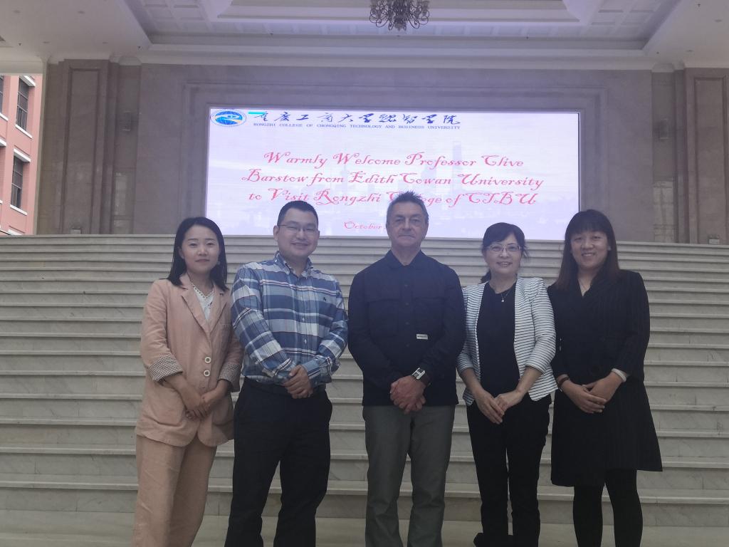2019年10月24日下午,澳大利亚埃迪斯科文大学(Edith Cowan University)人文与艺术学院执行院长克莱夫•巴斯托教授(Professor Clive Barstow)在传扬国际教育集团市场经理刘静泽的陪同下到我校访问并洽谈合作。副校长肖肃、国际合作交流处处长石转转、商务学院院长张红梅以及院长助理寸家菊在行政楼会议室接待了来访嘉宾。双方进行了友好的会谈。副校长肖肃对来访嘉宾表示热烈欢迎,并简要介绍了我校发展历程、专业设置和国际交流与合作方面取得的成果等。克莱夫•巴斯托教授介绍了埃迪斯科文大学的基本情况。双方就未来可开展的合作交换了意见。