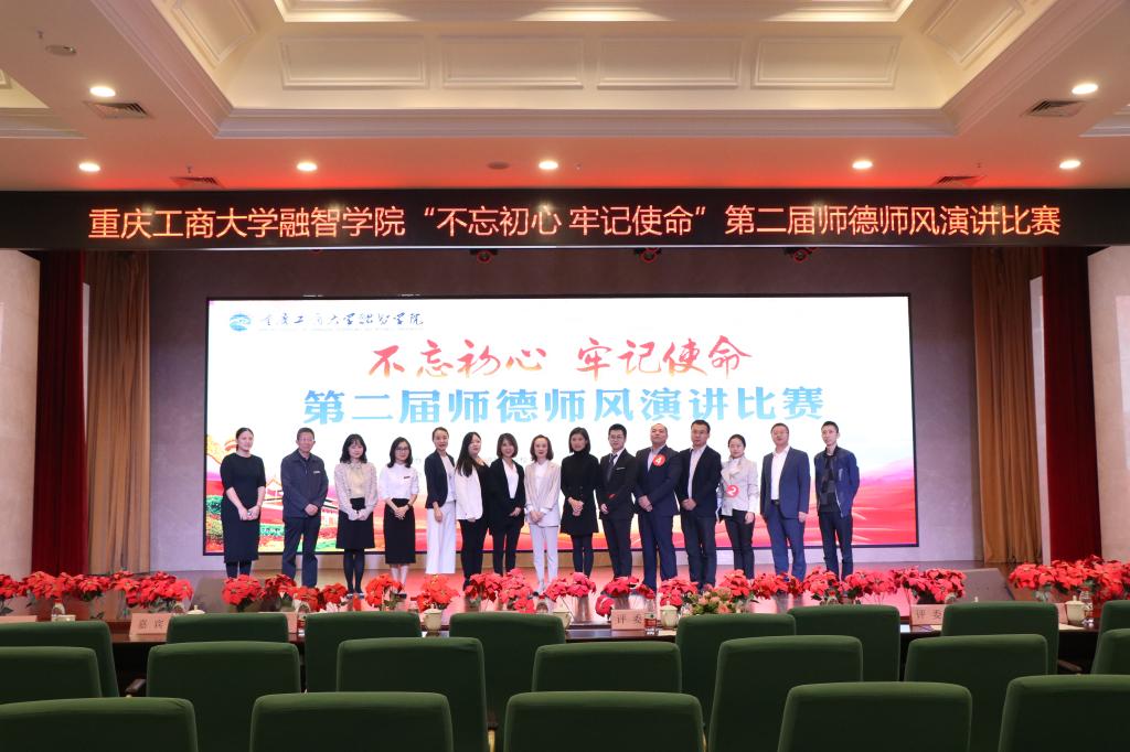 2019年10月23日12点30分,重庆工商大学融智学院“不忘初心、牢记使命”第二届教职工师德师风演讲比赛在学术报告厅拉开帷幕。党委书记丁广龙、常务副校长吴华安等校领导班子出席了此次活动。本次大赛由学校工会主办,商务学院部门工会、财富管理学院部门工会、管理工程学院部门工会、教辅二部门工会共同承办。来自不同工会的15名教职工以饱满的热情、充实的内容和生动的语言为在座的观众呈现出了一台精彩的演讲。