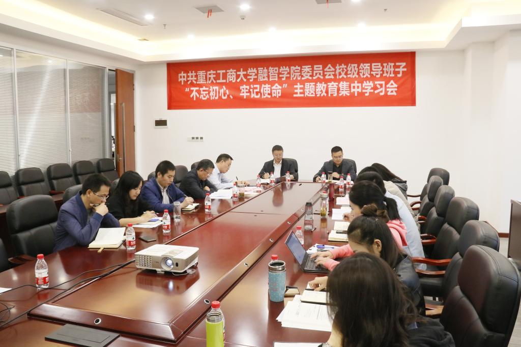 10月21日,按照重庆工商大学融智学院“不忘初心、牢记使命”主题教育工作整体部署,我校“不忘初心、牢记使命”主题教育校级领导班子成员第十次集中学习研讨会在行政楼2303会议室召开,重点学习《习近平关于“不忘初心、牢记使命”重要论述选编》(以下简称“《选编》”)。校党委书记丁广龙、常务副校长吴华安、副校长沈民、校长助理房朝君、校长助理李春雷等校领导班子成员参加学习,二级学院负责人、二级学院办公室主任、主题教育领导小组办公室工作成员列席学习。会议由校党委书记丁广龙主持。
