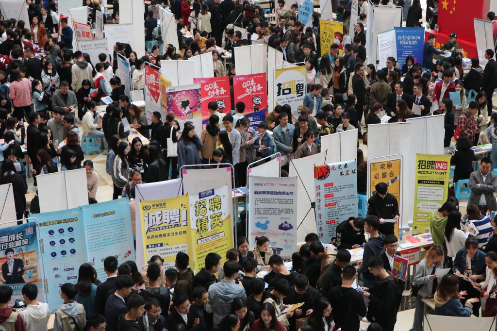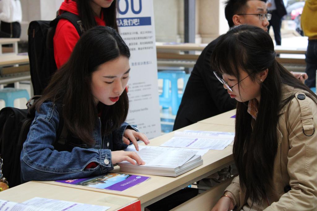 10月25日,我校2020届毕业生校园双选会在教学楼大厅顺利开展。本次双选会共吸引了融创集团、新东方、东北证券、百胜集团、金科物业等两百余家各类高质量企业前来觅贤,共提供岗位7000余个,开启了一场伯乐与千里马的邂逅盛会。