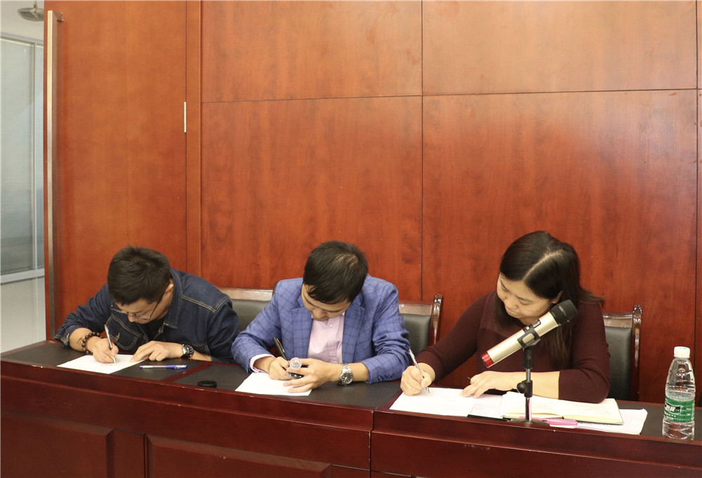 会上,陈龙国书记为兼职辅导员代表颁发了聘书,对他们长期的辛勤付出表示了感谢。会计学院许静老师、金融学院张孝英老师、经济学院李兴林老师、财富管理学院唐钰静老师、物流工程学院白雪老师、 信息工程学院梁建良老师、商务学院李慧老师、管理工程学院高雪莲老师作为2017级,2018级兼职辅导员代表上台领取了聘书。接着,物流工程学院党总支副书记李喆和物流工程学院陶俊杉老师上台签订《重庆工商大学融智学院兼职辅导员聘用协议书》。