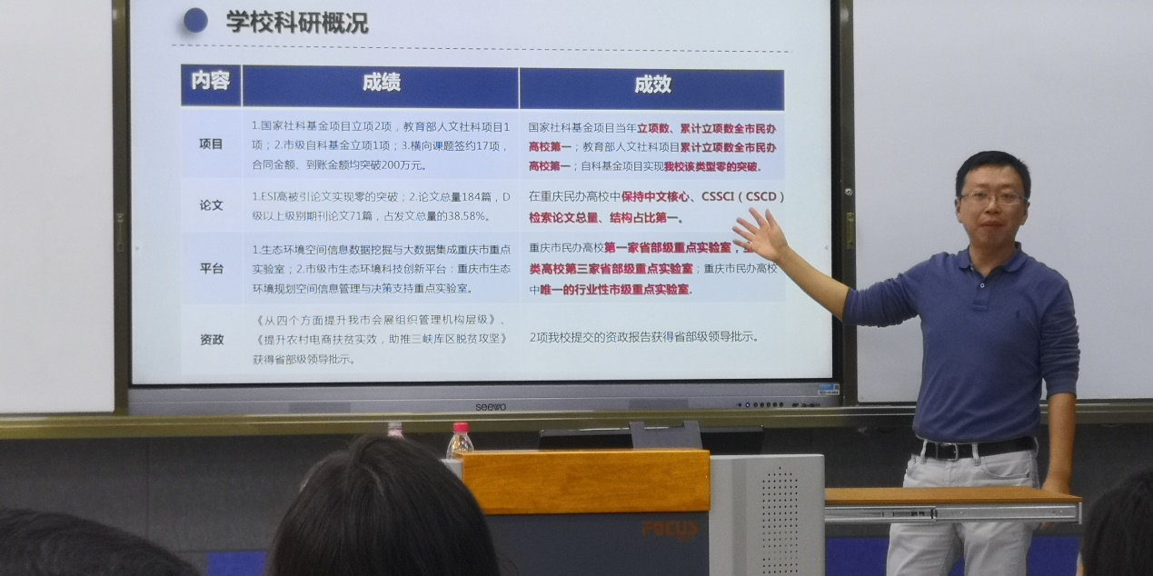 10月8日-22日,重庆工商大学融智学院开展了为期两周的2019年新进教师入职培训,全校20名新入职的教师参加了培训。本次培训由教务处教师发展中心主办,分为两大模块四个环节共54学时,第一个模块为岗前培训专项,包括校领导专题讲座环节和职能部门规章制度解读环节;第二个模块为教学能力培养专项,包括教学能力培养讲座环节和微格教学实操练习环节。