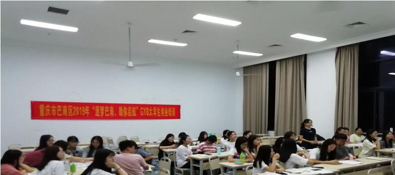 为切实加强我校学生的就业创业意识,提升就业创业能力,激发创新创业热情,在重庆市巴南区人社局、就业服务管理局支持下,重庆工商大学融智学院继续教育学院于2019年9月16日下午,在校内召开了巴南区2019年GYB创业培训开班典礼。本次培训为我校2019-2020学年GYB、SYB等创业培训工作拉开了序幕。GYB创业培训随后陆续在全校各学院开展,截至11月初,已有520名学生参与了培训。