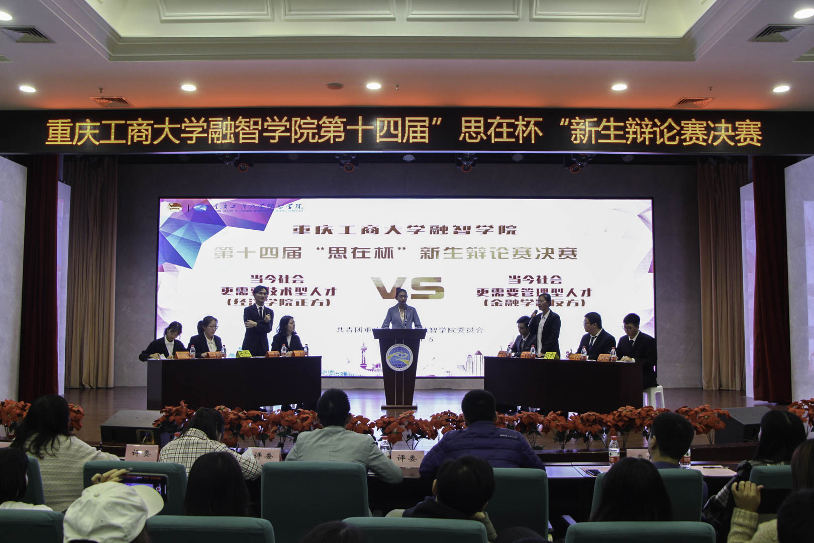 经过初赛、复赛激烈角逐,站在决赛场上的两支队伍分别正方金融学院代表队反方经济学院代表队,他们就“当今社会更需要技术型人才还是管理型人才”展开了精彩辩论。