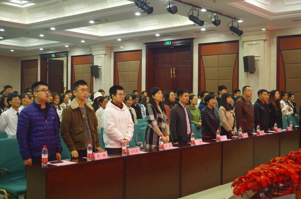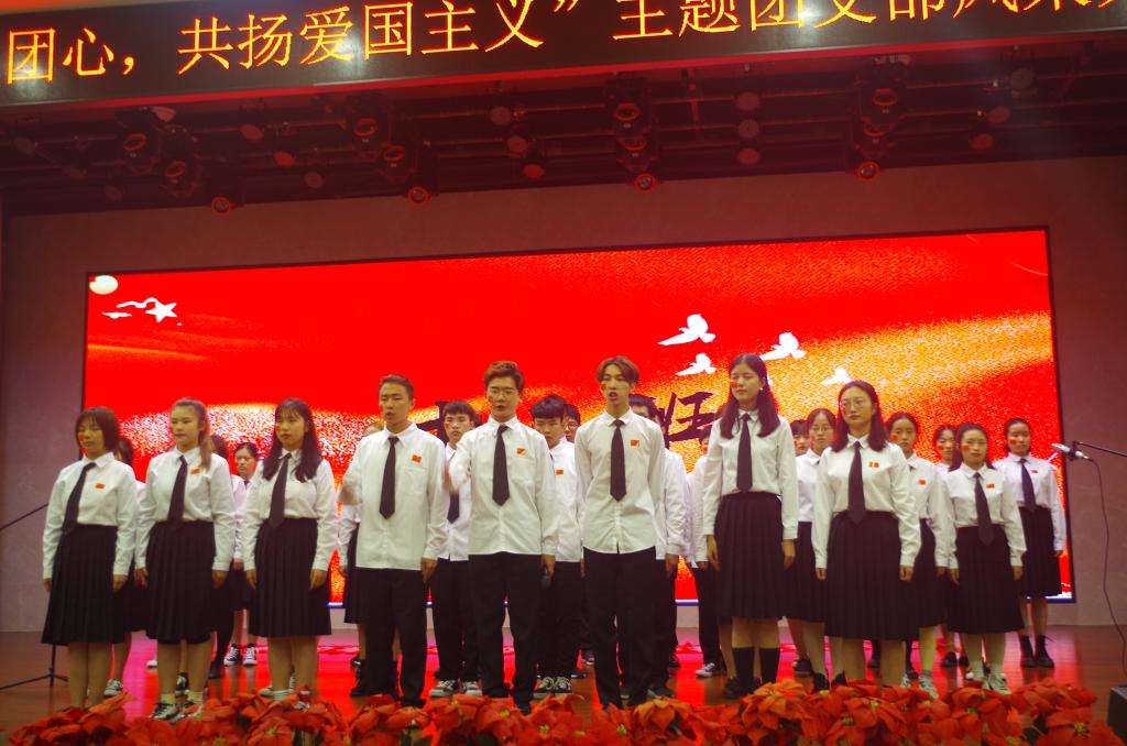 为庆祝建国七十周年,弘扬爱国精神,增加同学们对“党”的理解,使党和团更好的融合。重庆工商大学融智学院金融学院于2019年11月6日12:00,在学术报告厅举办“党情走进团心,共扬爱国主义”主题团支部风采大赛决赛。校团委书记兼学生处副处长李刚老师、金融学院党总支副书记陈萍老师、团总支书记于成江老师、学生党支部书记刘官青老师、辅导员闾鹏老师、张凤瑛老师、易思老师、晏鸿萃老师、郑旺老师、游韵老师作为嘉宾出席此次决赛;管理工程学院党总支副书记高雪莲老师、经济学院综合办副主任兼校团委副书记夏文瑞老师、信息工程学院综合办副主任梁建良老师、校党员服务站站长秦杰、校学生会主席周艺担任评委。