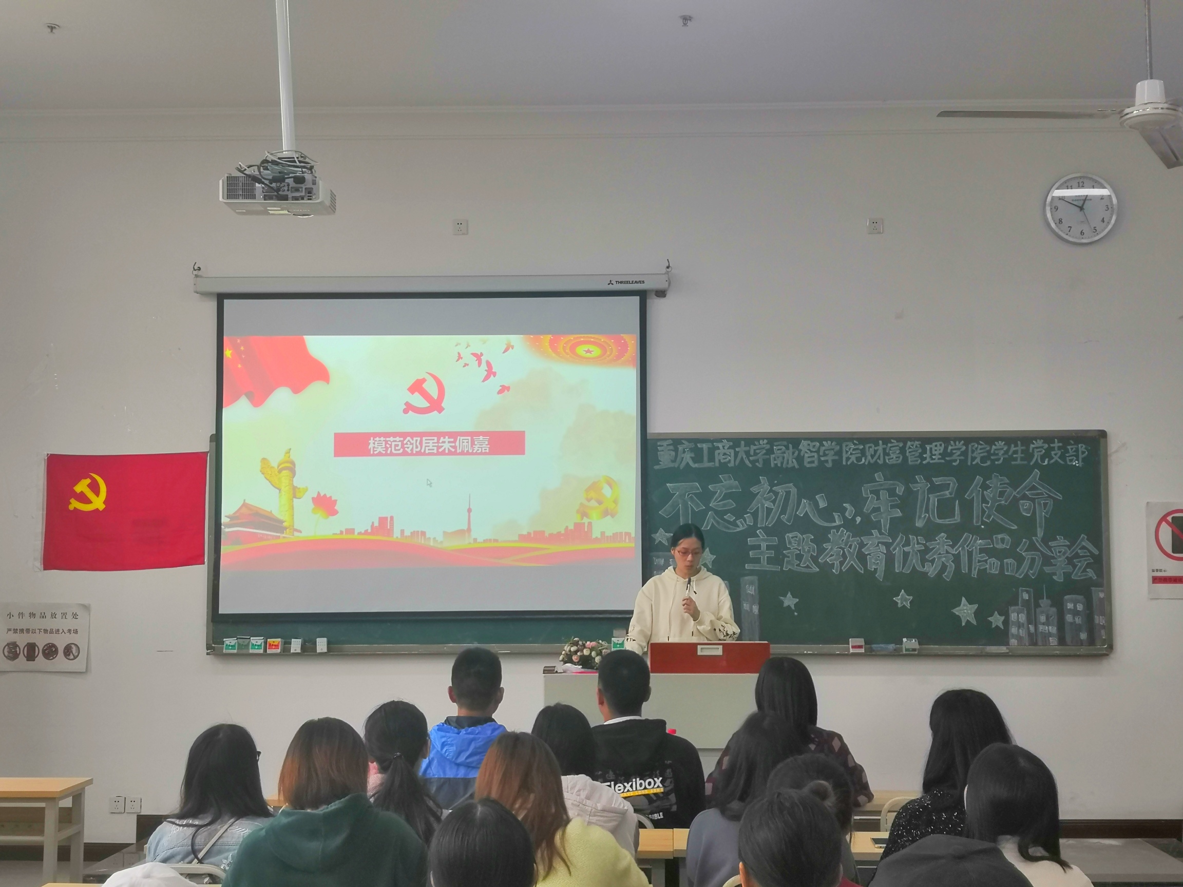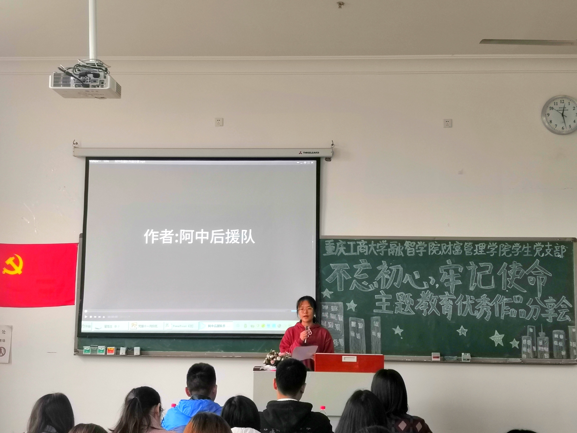 为深入开展“不忘初心、牢记使命”主题教育,财富管理学院学生党支部通过支部书记讲党课、理论研讨集中学习、读原著学原文分享心得等形式,对学生党员进行全面的思想政治教育,并于11月8日中午12:10在1612教室开展2019-2020学年“不忘初心,牢记使命”主题教育优秀作品分享会。出席本次会议的有财富管理学院学生党支部书记左小容,财富管理学院学生党支部组织委员芦丹。财富管理学院学生党员、党员服务站全体工作人员参加了本次会议。