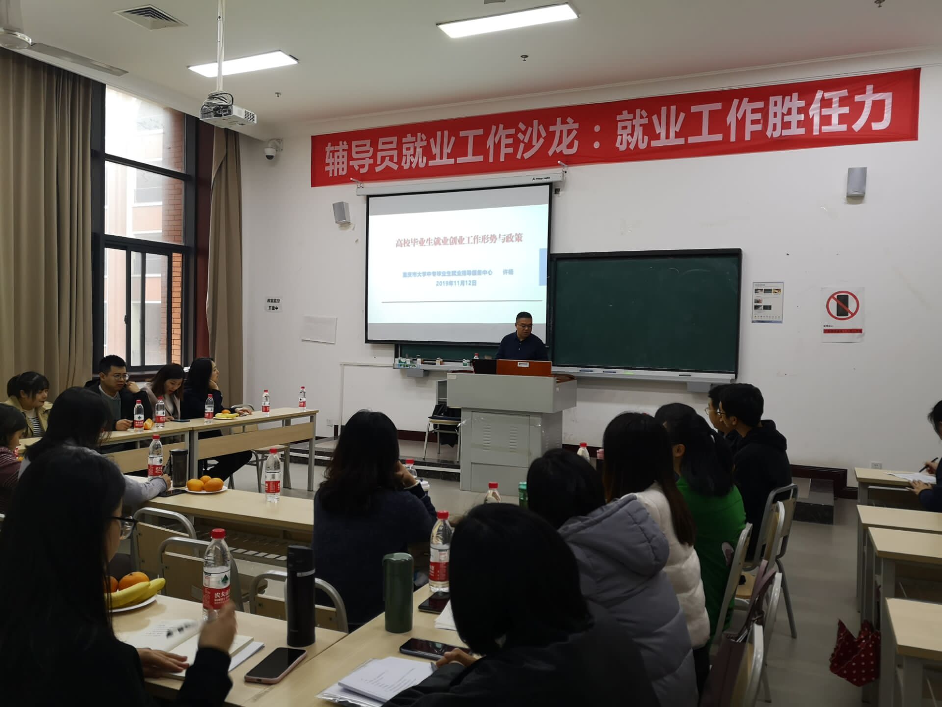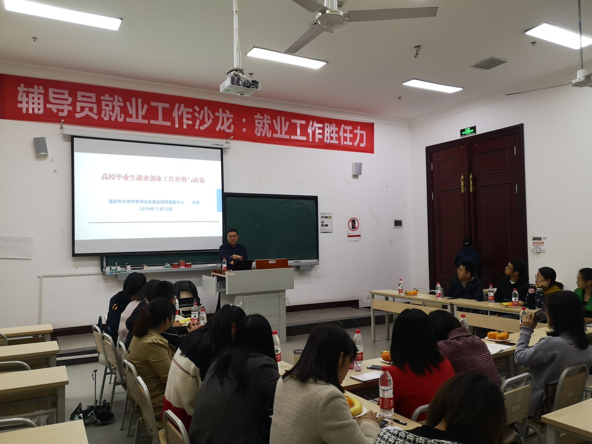 2019年11月12日下午,我校辅导员“就业工作胜任力”主题沙龙在教学楼1318圆满举行。本次沙龙旨在拓展创新工作思路,充分熟悉及规范就业工作流程,全面提升辅导员就业工作业务能力。特邀重庆市就业指导中心培训与研究部部长许杨来校交流指导,各二级学院2016级、2017级辅导员代表参加。