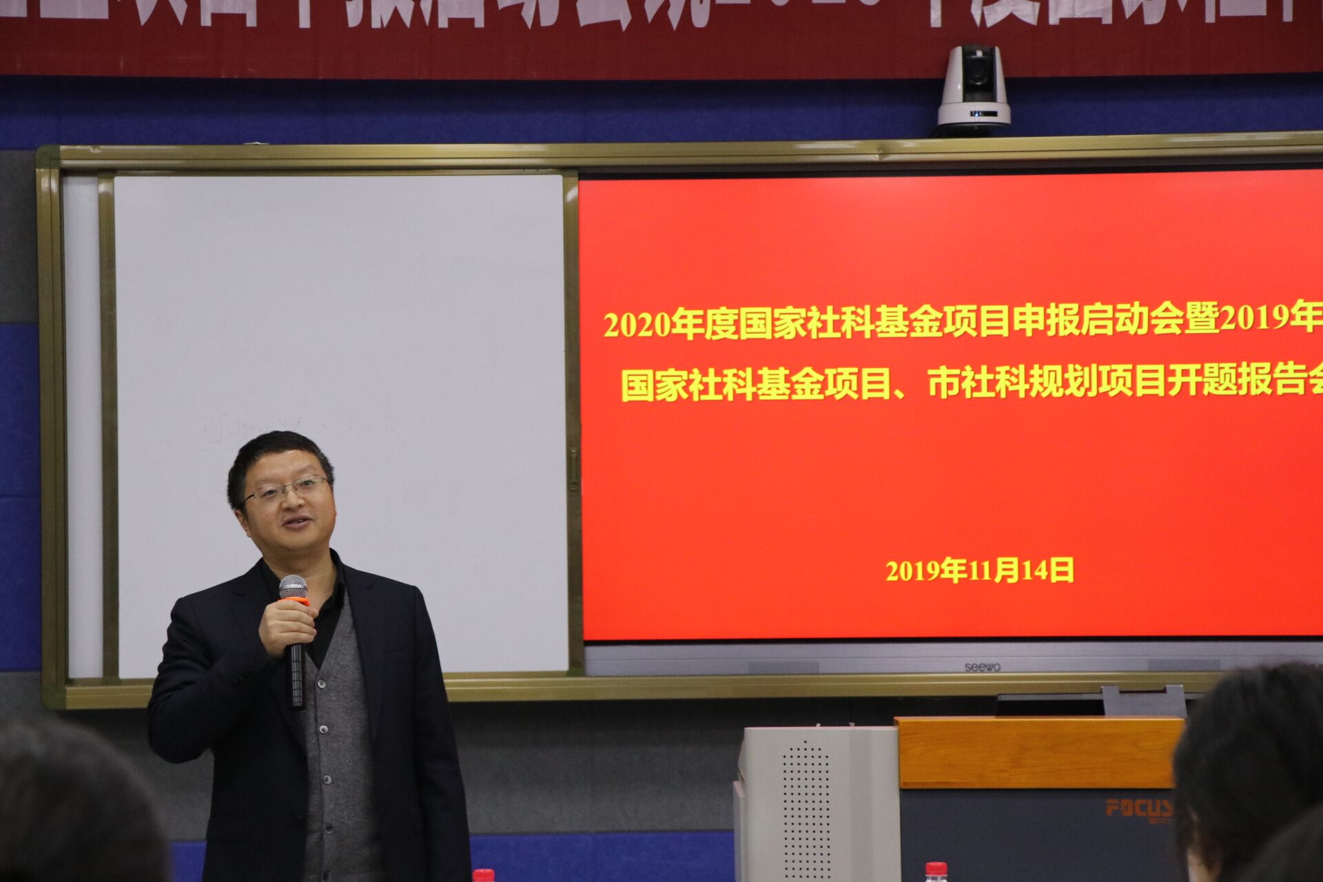 2019年11月14日,我校2020年度国家社科基金项目申报启动会暨2019年度国家社科基金项目、市社科规划项目开题报告会在教学楼1220智慧教室召开。出席第一阶段启动会的领导有重庆市社科联周顺文调研员、我校吴华安常务副校长、房朝君校长助理,参会人员包括各二级教学单位负责人、项目负责人与项目组成员、具有博士学位或副高级及以上职称的教学科研人员,会议由科研处张立副处长主持。