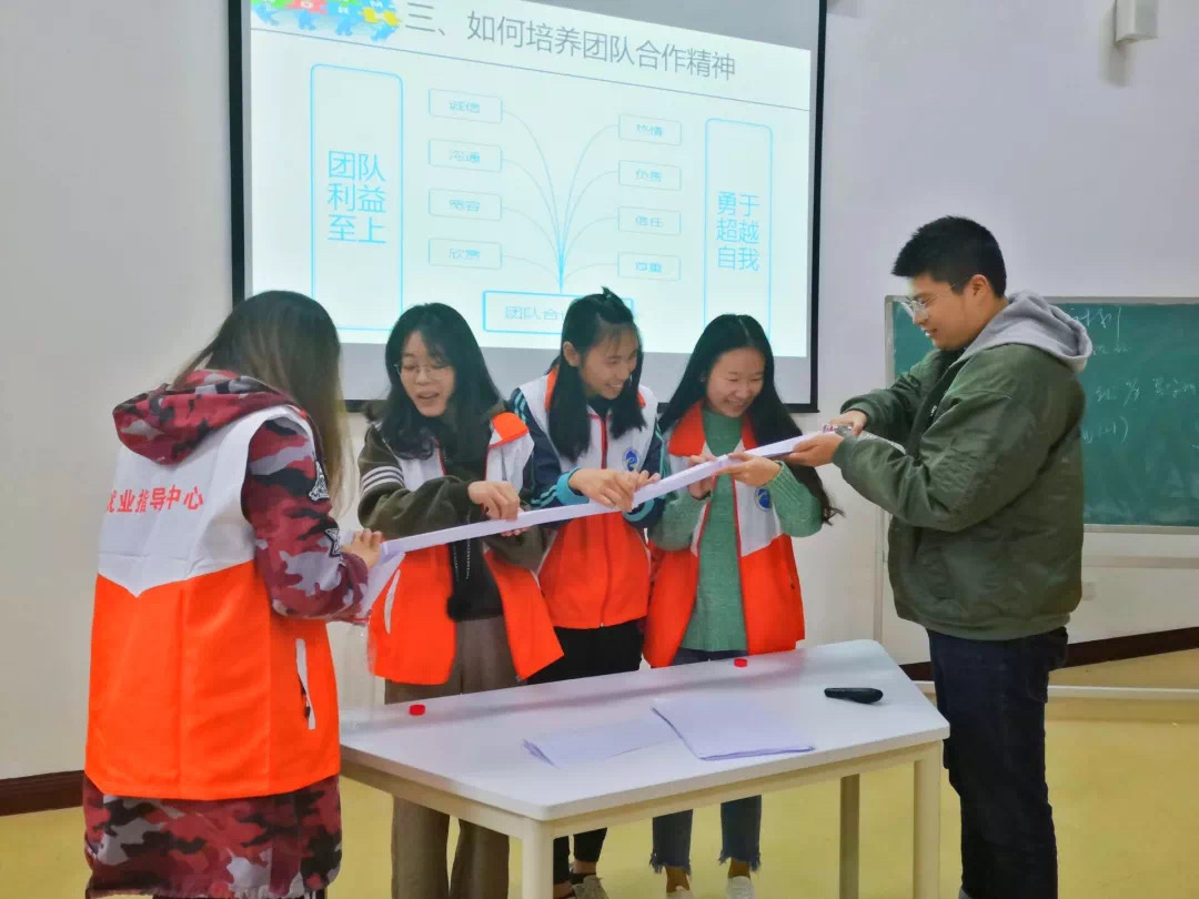 以“沟通能力”为主题的培训,通过刘晨光老师的讲解和引进企业面试的实例,学员们提高了对面试的认识和应对能力。“单线不成丝,独木不成林”,在以“团队合作能力培养与提升”为主题的培训中,吴安奉老师对团队和团队合作做了系统的解释,并举出唐僧师徒四人去西天取经的例子,引导学员们明确团队合作的重要性。“有礼走遍天下,无礼寸步难行”,在“商务礼仪与职业素养提升”为主题的培训中,罗晓双老师提出面试成功的第一步即是要留下一个好印象,同时注重着装穿搭和礼仪姿态也十分重要,并就此让同学们做了现场示范。在大数据时代背景下,新媒体的运用愈发重要,在以“新媒体运行能力的提升与实践”为主题的培训中,冉佳佳老师通过讲解和小组完成策略报告实践的方式,让学员们了解媒体和掌握媒体的运营策略以及技巧,大家纷纷表示出了极强的兴趣。“成为情绪的主人,才能真正的做自己”,在以“压力调试与情绪管理”为主题的培训中,唐凤芬老师生动有趣的讲解吸引学员们积极参与互动,让学员们明白了如何在觉察情绪、认知性格、调节行为、提升技能中缓解压力。