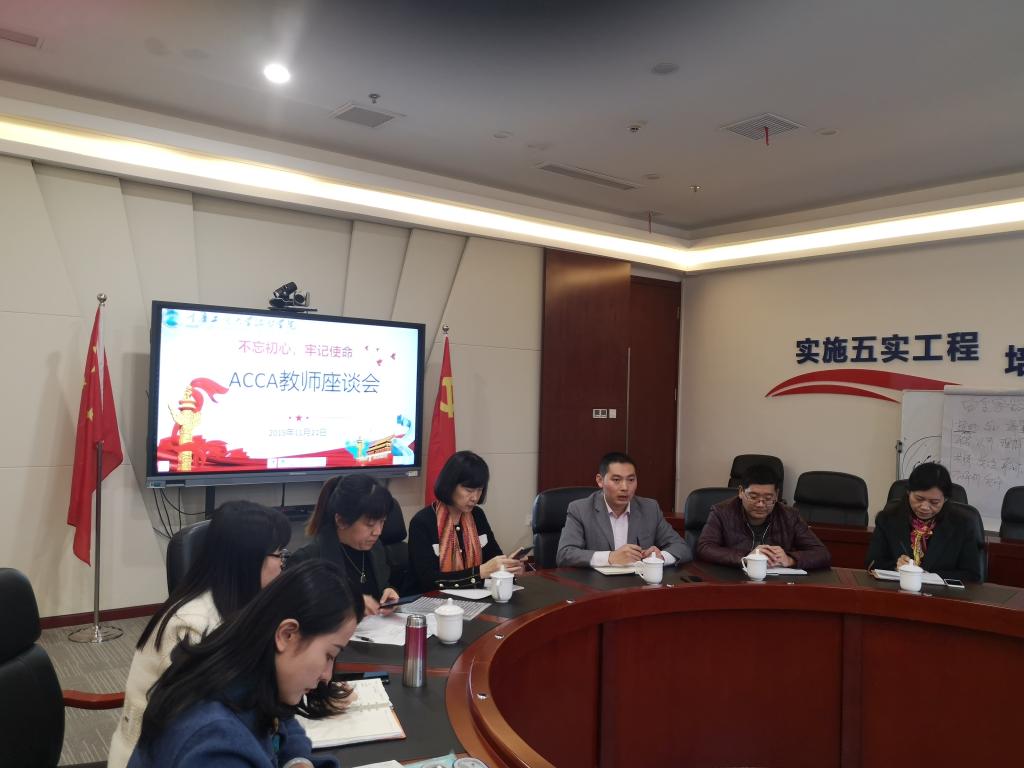 为了完善ACCA成建制班的教学管理工作,倾听ACCA班级任课老师对ACCA专业方向培养方案以及课程教学的意见和建议,提高育人质量,会计学院于2019年11月21日下午,在2302会议室顺利召开ACCA教师座谈会。国际合作交流处石转转处长、会计学院学术带头人章新蓉教授、会计学院谢付杰院长、会计学院党总支姚转花书记,思政部常晓薇主任、基础部吕福起主任,ACCA合作单位代表及任课教师代表、ACCA班辅导员参加了此次会议。