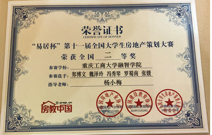 管理工程学院房地产开发与管理专业的参赛队伍在“易居杯”第十一届全国大学生房地产策划大赛中实现了新的突破,荣获全国二等奖,也是本次总决赛西南组唯一一支获得跻身于全国二等奖的独立本科院校。