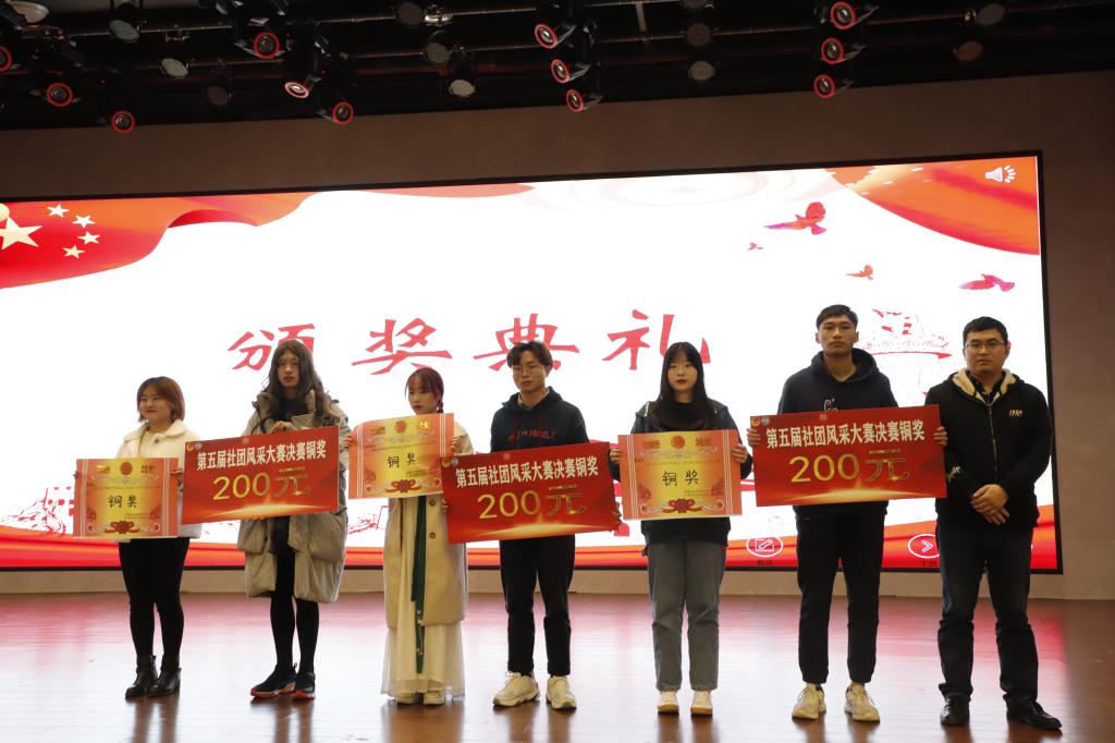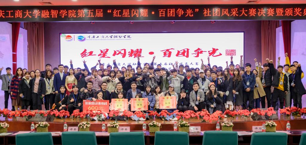 为充分发挥学生社团在校园文化建设和大学生素质拓展中的积极作用,2019年11月28日中午12:30,由校团委主办,社团联合会承办的第五届“红星闪耀•百团争光”社团风采大赛决赛暨颁奖典礼在学术报告厅顺利举行。应邀出席本次决赛暨颁奖典礼的评委有校团委书记兼学生处副处长李刚、校团委兼职副书记、经济学院团总支书记夏文瑞,管理工程学院团总支书记范雪林、物流工程学院团总支书记刘有沛、商务学院团总支书记徐繁生、校团委刘艳娇、校团委郑旺。10个晋级的社团在本次决赛中展开了激烈地比拼,校级学生组织主席团代表、各学院主席团代表、28个社团代表,近500名观众观看了本次大赛。