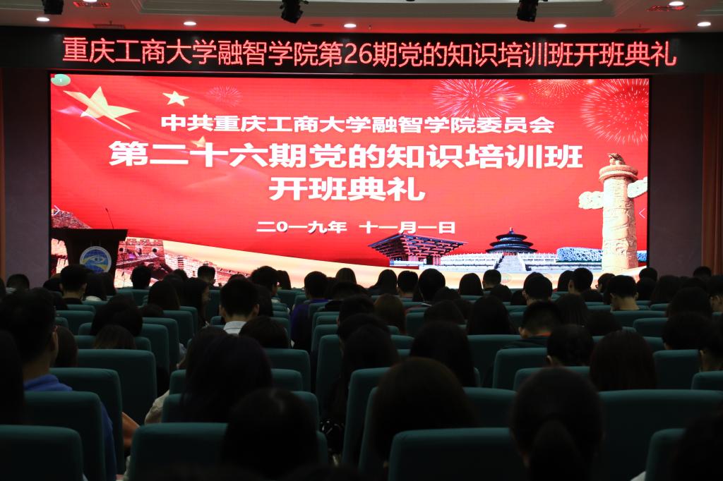为了进一步提高入党积极分子对党的理解和认识,端正入党动机,坚定入党决心,使他们从思想和行动两个方面严格要求自己,争取早日加入党组织,2019年11月1日中午,我校“第26期党的知识培训班开班典礼”在学术报告厅隆重举行。校党委书记丁广龙、党委副书记陈龙国、党群工作部部长以及各学院党总支负责人出席了典礼,我校350余名入党积极分子参加了本次典礼,开班典礼由党群工作部部长倪倩茜主持。