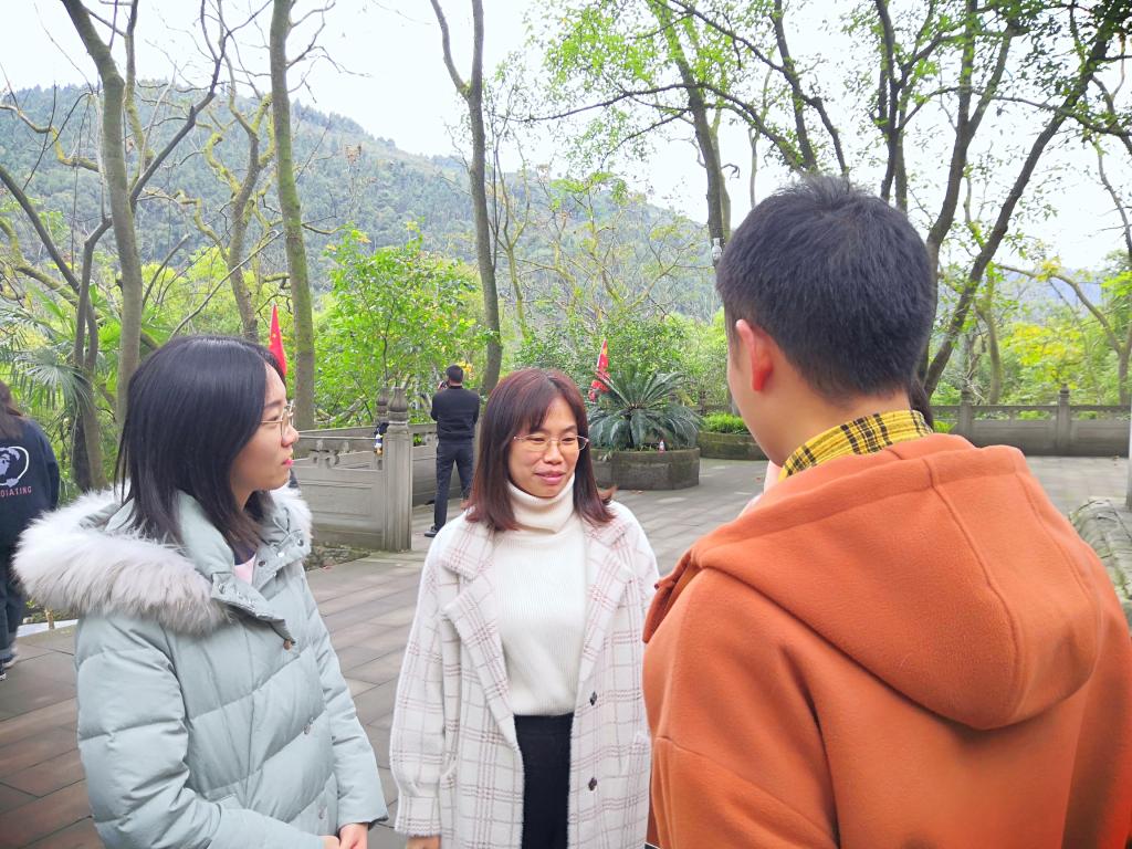 第二阶段——缅怀革命先烈。下午14点30分,师生党员出发前往南泉革命烈士陵园,以实际行动表达对革命先烈崇敬之情。首先,伍林兵同志带领全体党员同志在革命烈士纪念碑前齐唱国歌,组织大家手持白色菊花集体默哀三分钟后,为革命烈士献花,表达大家对革命烈士的缅怀。紧接着,学生党员蒲芋洁为大家讲述了关于革命先烈许云峰同志的英勇事迹,带着大家重温红色历史,学习先烈精神。身为中国共产党员,就是要在新时代的潮流下,不忘初心,牢记使命,砥砺前行。随后,师生党员自由参观烈士陵园,相互交流,共同学习。党总支副书记宋钰静老师在总结中特别强调党员同志通过聆听革命烈士英勇事迹,发扬和传承革命军人吃苦耐劳、敢于拼搏、不屈不挠、勇往直前的革命精神,不断开拓创新,继往开来,成为新时代的奋斗者。