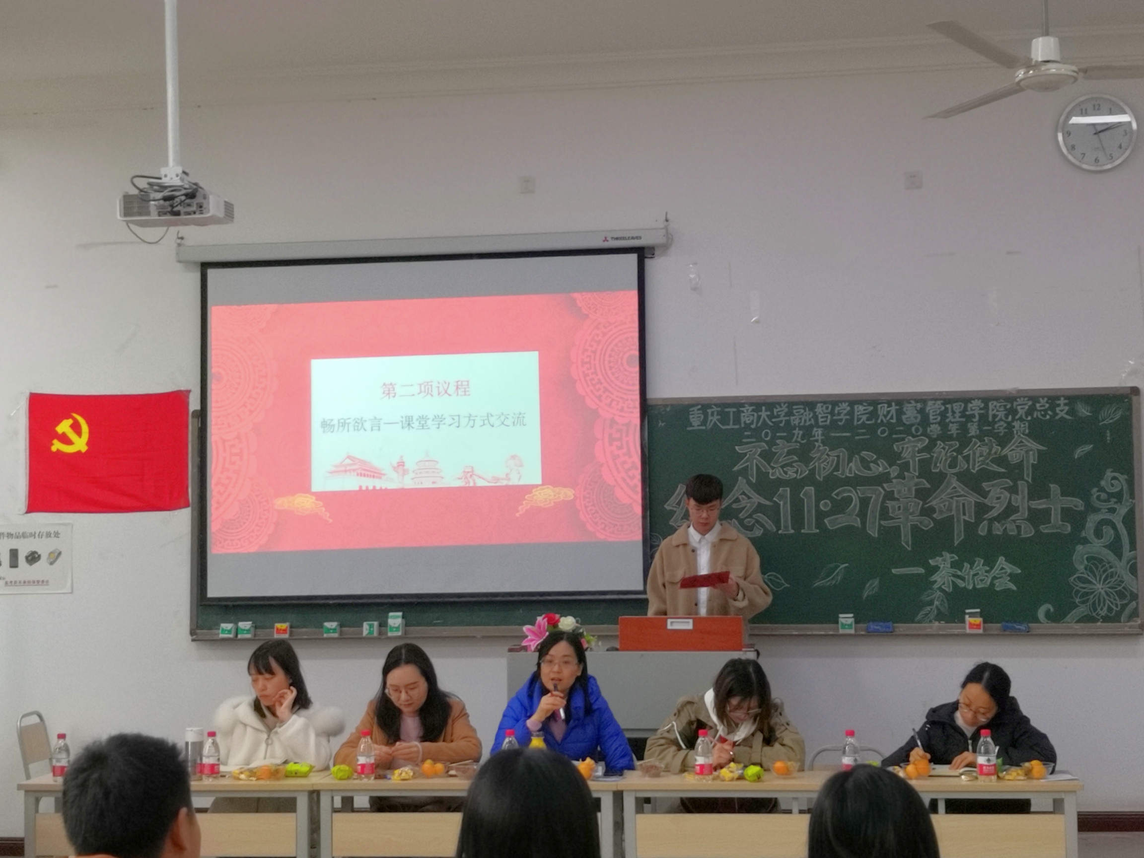 本次主题教育分为两个阶段。第一阶段——忆苦思甜。中午12点30分,会议开始,师生党员集体了解一一·二七事件的过程。接着,全体师生党员品尝"红军餐"——糙米饭。财富管理学院党总支第二副书记赵娜老师表示,党员们通过品尝糙米饭忆苦思甜,牢记历史,学习革命烈士艰苦朴素、不畏牺牲的精神。“我们现在幸福安康的生活,都是当年浴血奋战的革命烈士们用身躯和鲜血换来的。我们不仅要传承和发扬革命烈士不怕吃苦的精神,更要在实际生活中发挥党员的先锋模范作用,用积极向上的态度对待工作和学习。”学生党员伍林兵在分享时说到