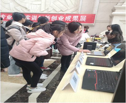 本次展示会上,创新创业成果、电子商务美工作品、网页设计与网站建设以及网络营销与推广等成果集体亮相。其中,由陶俊杉老师牵头指导的8组电子商务美工作品于现场展示,吸引了众多师生驻足观看。由赵礼玲老师牵头指导形成的6组网络营销与推广策划作品,分别通过现场游戏、抖音直播等新媒体方式实现了营销与推广活动的创新与实际运营,与学生和网友形成了良性互动,展示会当日网络销售总额高达3000多元。