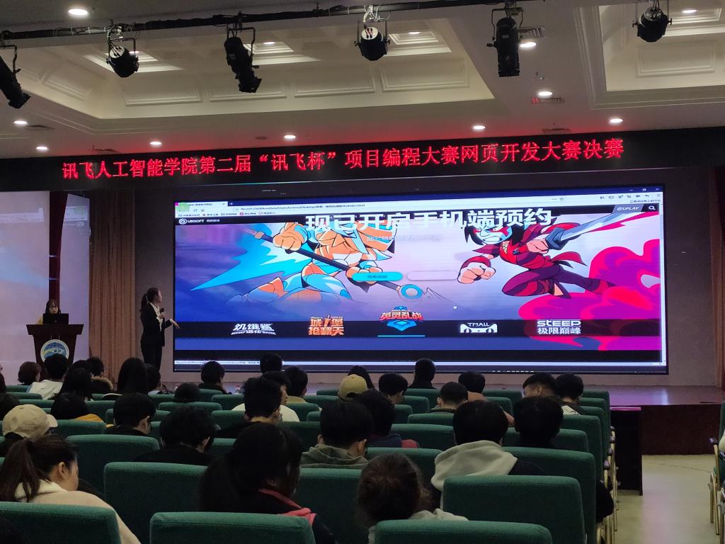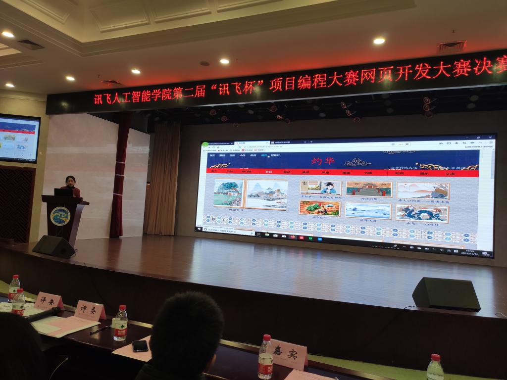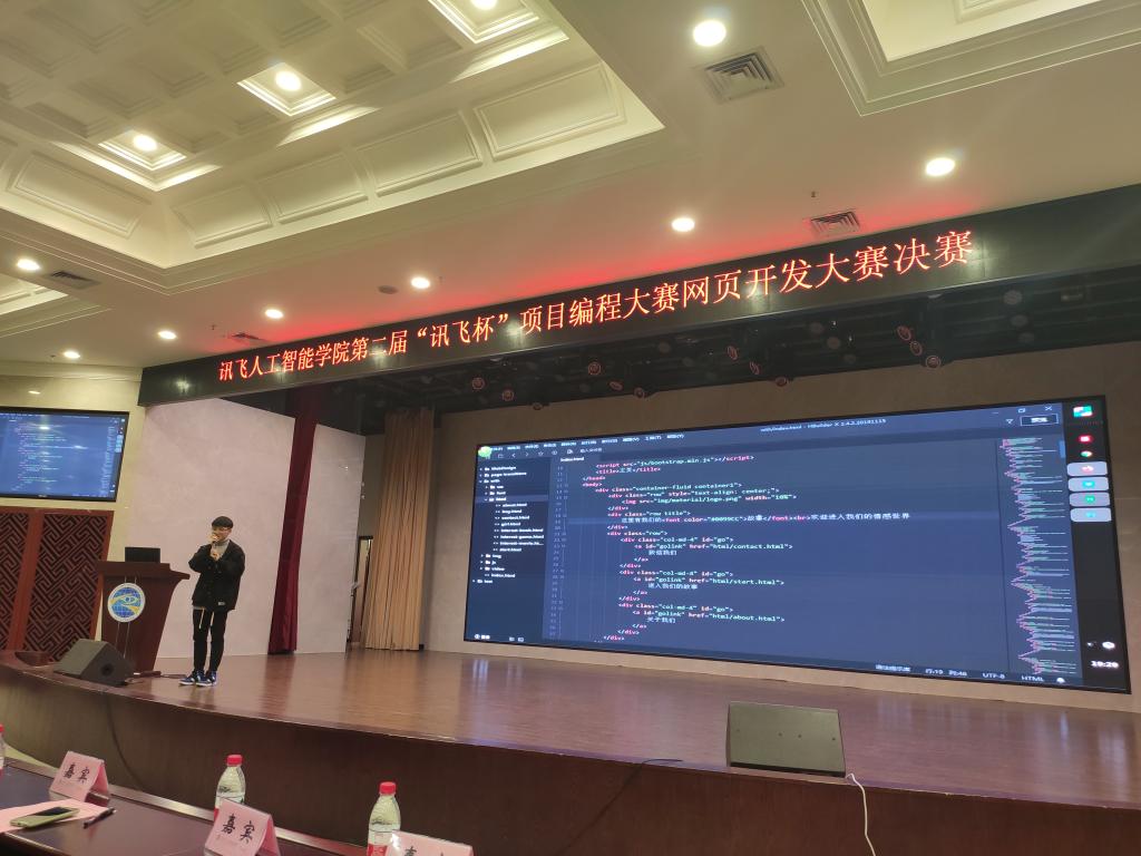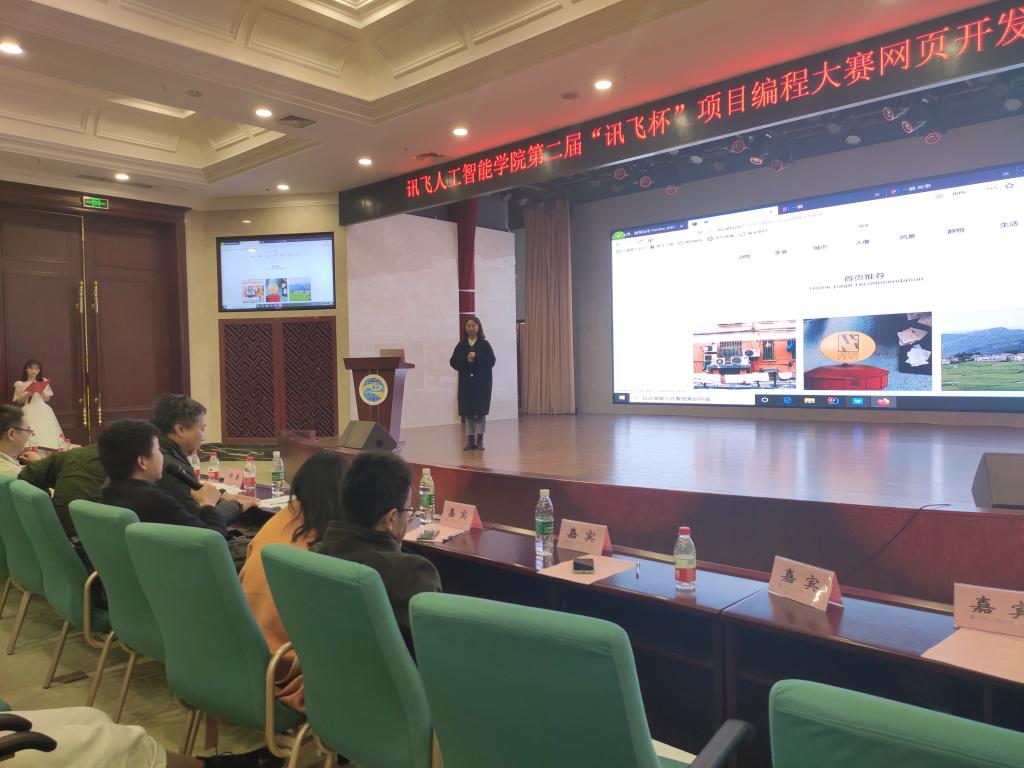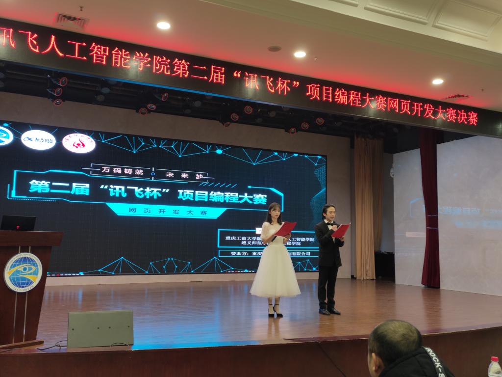 重庆工商大学融智学院讯飞人工智能学院(以下简称学院)为了推进素质教育,拓展高校学生的综合素质,培养团队协作意识,提升编程能力和专业技能,营造良好的学习氛围,创建开拓创新的学风,丰富大学生的校园生活,发挥当代大学生的创造力,提升综合能力,体现项目式人才培养的特色,针对同学们的各个学习阶段,规划并举办“讯飞杯”系列项目编程大赛。学院继上半年举行第一届“讯飞杯”项目编程大赛(主题:C语言项目编程)后,本学期举办第二届“讯飞杯” 项目编程大赛网页开发大赛(主题:“万码铸就未来梦”)。同时,为了促进科大讯飞校企合作西南高校之间的人才培养交流,为学生们提供一个技艺切磋及相互学习的平台,第二届“讯飞杯”项目编程大赛特别邀请了遵义师范学院信息工程学院联合举办。本次大赛分为校内初赛、联校复赛和决赛三个阶段。