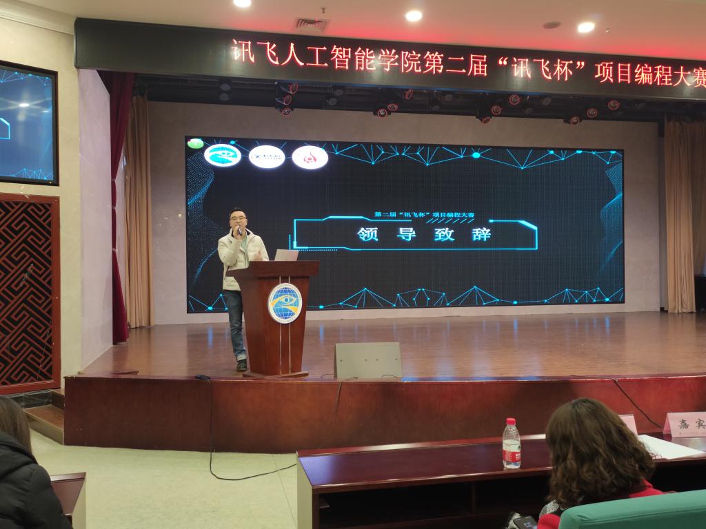 杨洋副总监作总结发言,对比赛感到十分满意,对选手们作品质量、参赛态度等多方面给予肯定,对作品和选手们的表现进行了全面的点评,指出了要更加注意细节上的问题,例如编码应整齐排列,分类储存等等。他希望同学们能够依托科大讯飞给大家搭建的平台和提供的雄厚技术能力为支撑,多多参与到此类专业性的比赛中来,将知识学以致用,提升专业技能和个人素质,为今后发展打下扎实基础。