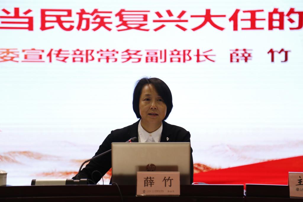讲课最后,薛副部长寄语全体师生们:自古英雄出少年。在漫漫历史长河中,中华民族青年英雄辈出。展望未来,青年一代必将大有可为,也必将大有作为。这是“长江后浪推前浪”的历史规律,也是“一代更比一代强”的青春责任。希望同学们担当起党和人民赋予的历史重任,在激扬青春、开拓人生、奉献社会的进程中,书写无愧于时代的壮丽篇章!