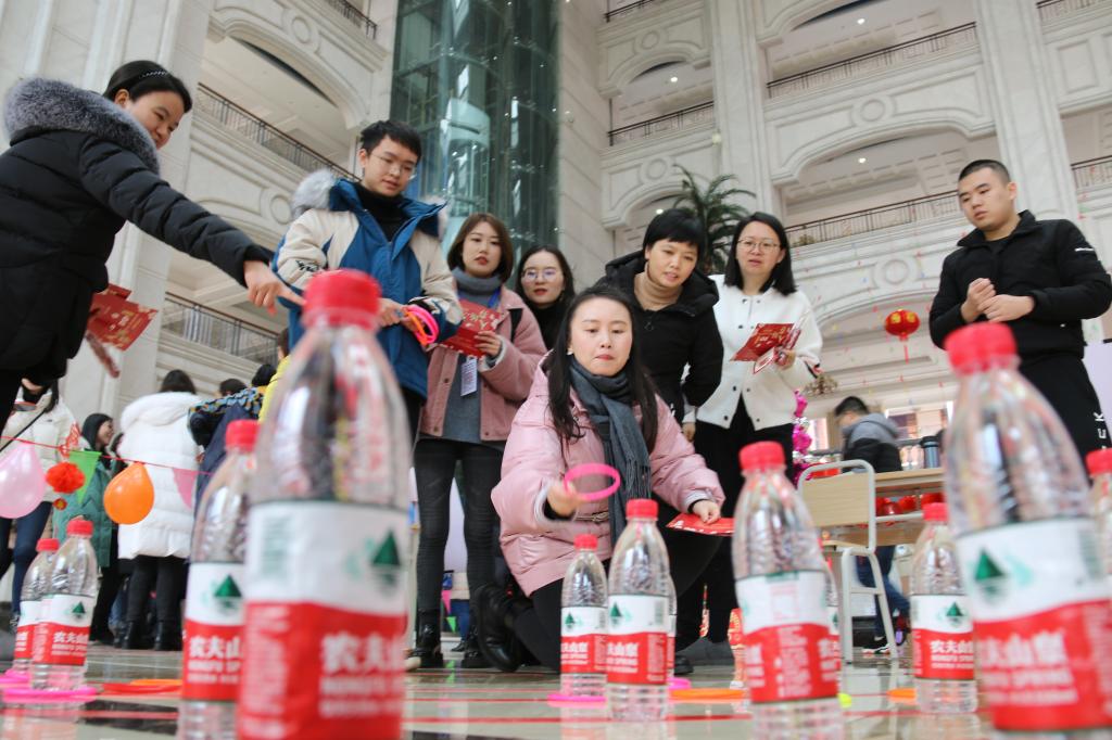 此次游园活动形式多样、内容丰富,“疯狂猜词”、“保龄球”、“传面粉”、“掌上明珠”、“投壶”、“摸福字”、“吹气球”、“手脚并用”等一系列游戏,吸引了众多教师踊跃参加,校领导们也莅临现场参与其中。老师们个个“身怀绝技”,“技艺高超”,满腔热情地参与到活动中,他们或相互配合、相互帮助,或相互“整蛊”、互喝“倒彩”,并如愿抱得心仪大奖而回,使得活动现场欢声笑语,精彩纷呈,乐在其中,好不热闹!