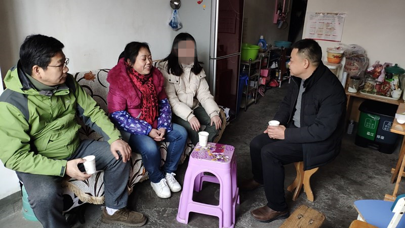 当天,学校另一支慰问队伍由学生处副处长兼团委书记李刚带队,与财富管理学院党总支副书记宋钰静及辅导员一道,深入到永新镇荆山村和文龙街道白庙村,分别慰问来自财富管理学院2019级的两位同学。
