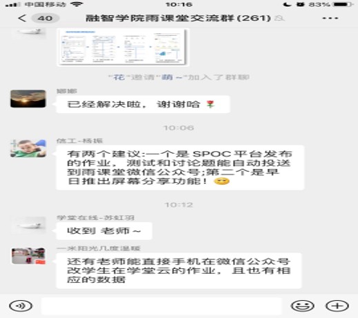 培训一开始,老师们先了解了一下学堂在线一体化平台的结构和部分新的便捷模块,然后进入本次培训主题——如何利用学堂云开展翻转课堂/混合式教学,从新手上路、课程资源包建设与导入、作业和考试、成员管理、教学周期管理、考核方案设置等六个方面学习了如何灵活使用校内SPOC平台学堂云搭建自己的在线课程。其中苏老师重点讲解了如何建设和导入课程资源包,并在直播中做了详细的步骤演示。在讲解之后的答疑交流时间里,老师们通过弹幕或投稿进行提问,并就教学过程中遇到的问题和苏老师进行了沟通和交流。培训结束后,老师们还对一体化平台提出了实用建议和期望,比如SPOC平台发布的作业、测试和讨论题目能自动投送到雨课堂微信公众号,以及早日推出屏幕分享功能等。