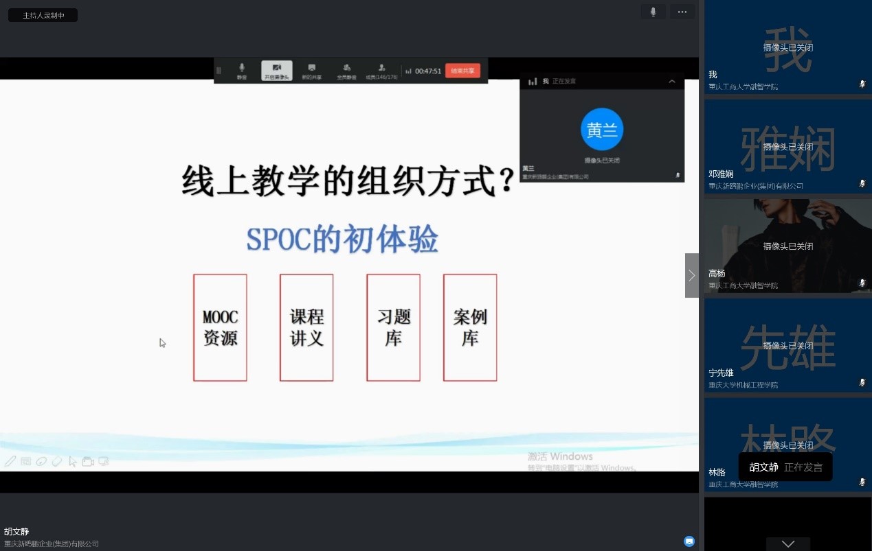 由于分享教师的案例经验非常出色,参会教师热情洋溢,会议气氛生动热烈,持续近两个半小时。最后,教师发展中心主任宁先雄对10位分享教师及他们教学团队的辛苦付出表示感谢,接下来教师发展中心会继续针对广大师生关心的相关问题举行专题培训或交流会,为广大教师提高线上教学质量提供支持。