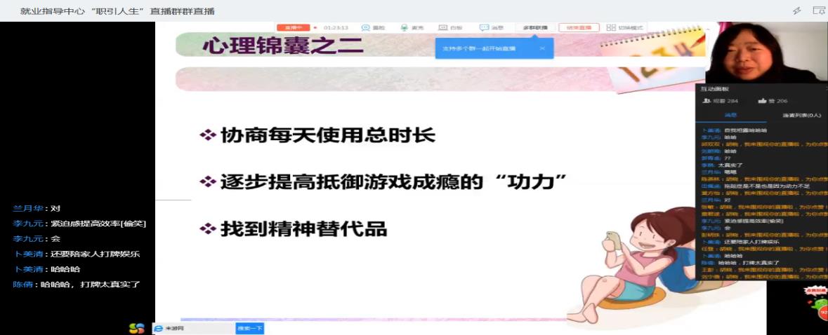 好心态带我们战胜畏惧,走向成功。在第二场“就业心理调适”主题讲座中,胡晓老师细致地分析了疫情下就业压力产生的原因、就业压力引发的不良情绪,指导同学们在面对不良心理情绪时,学会进行心理调适,科学合理地运用心理调节七“心”法释放压力,将各种不积极的情绪转为积极情绪能够让我们以较好的状态迎接就业。最后,老师也告诉同学们:危机同时也是一种转机。恐惧是一种意识状态,也是一种内在感受,我们要敢于正视、正确对待。