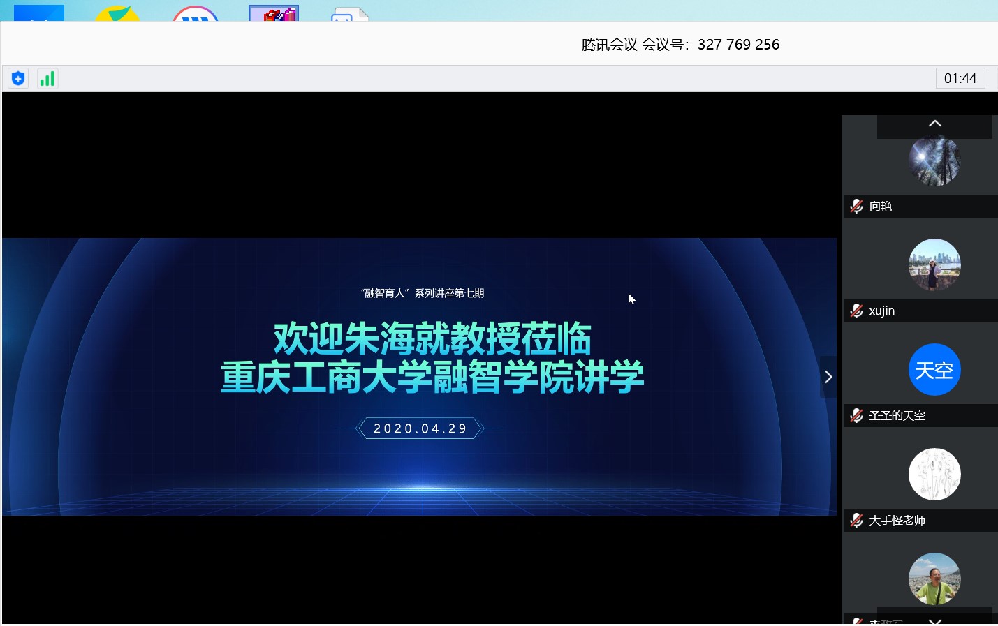 | 图1 朱海就教授学术报告腾讯视频会议现场 |