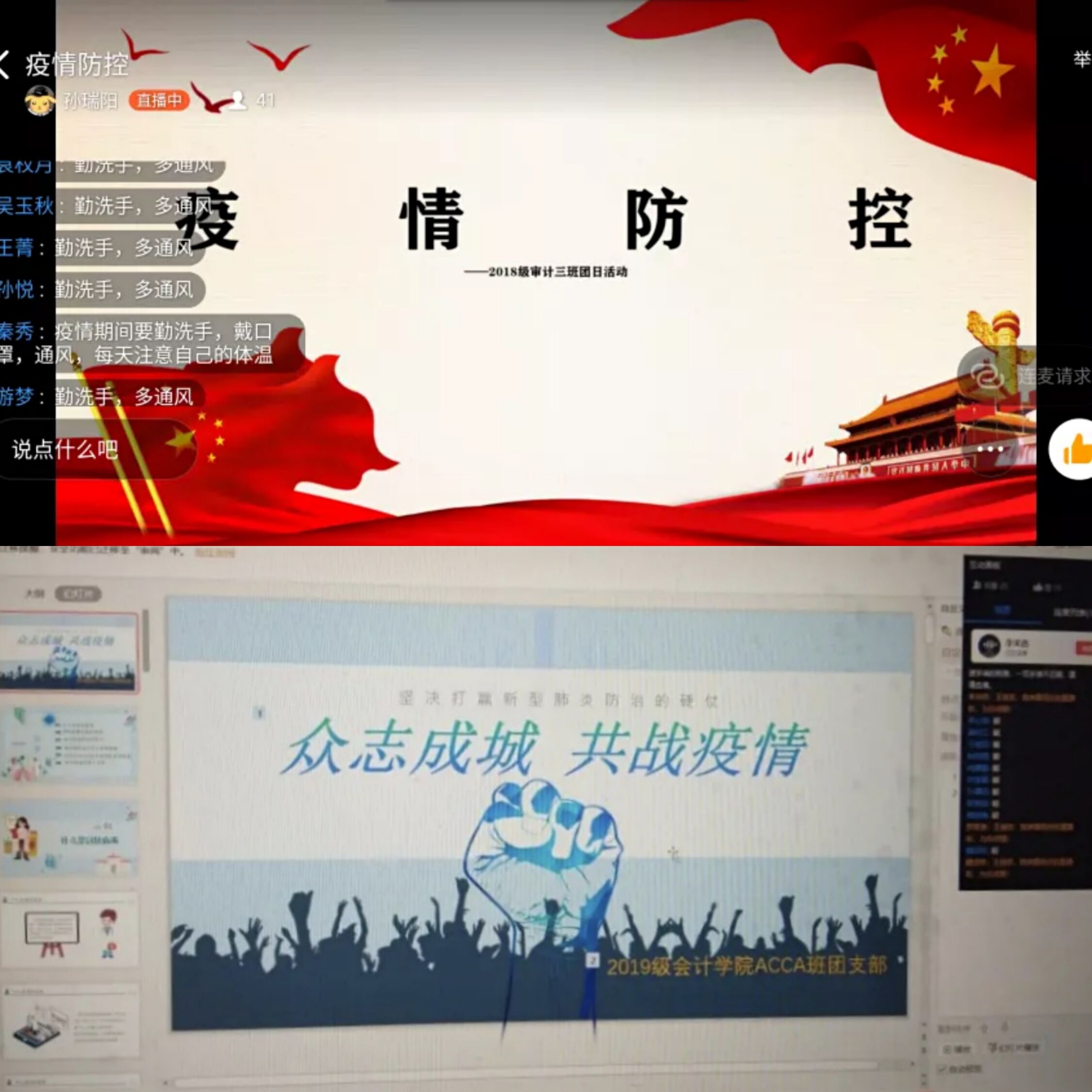 “分享”:会计学院率先建立“奋斗的青牛”就业服务指导钉钉群,邀请教师、已就业学生分享求职经验,持续开展线上就业指导工作。“交流”:教师积极开展教学工作交流,优化线上教学方案,提升线上教学效果。“共学”组织学生参加“全国大学生同上一堂疫情防控思政大课”,提升学生对疫情和我国防控工作的认识。“比拼”学生支部开展“决胜抗疫战贫,坚持党心所向”论文写作评比,助推学生理论知识向科研成果转化。