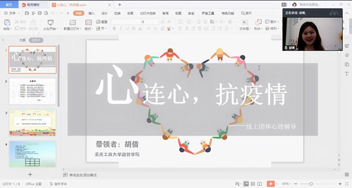 2020年6月9日下午14:00-15:30,我校5.25心理健康活动月系列活动之“心连心.抗疫情”团体心理辅导活动顺利开展。会议于线上平台腾讯会议举行,心理健康教育与咨询中心胡倩老师主持。参加此次线上活动的成员是7位来自我校大一至大三的同学们,通过自愿报名的形式参加。
