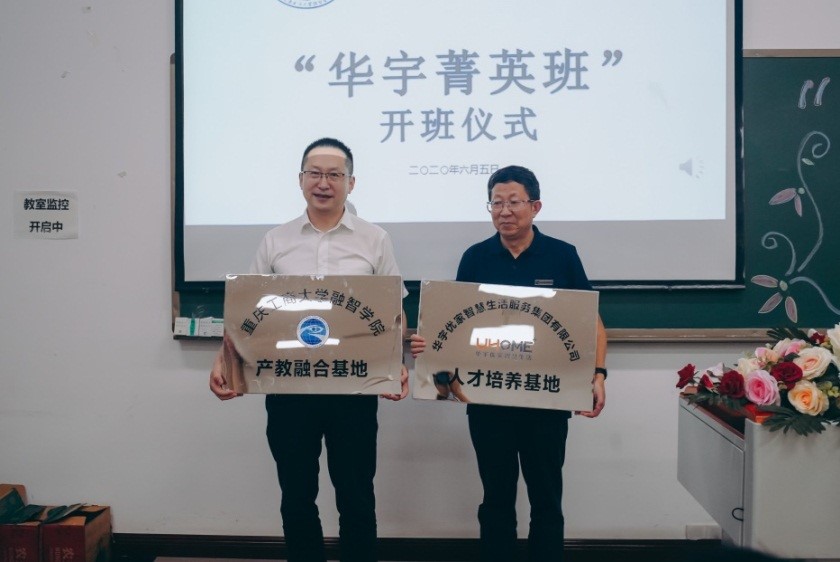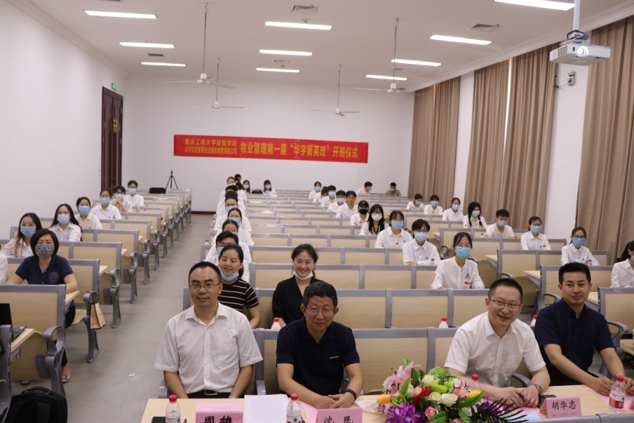 202065日下午,重庆工商大学融智学院管理工程学院与华宇优家集团共同设立的“华宇菁英班”开班仪式在教学楼1606教室顺利举行。出席本次仪式的嘉宾有华宇优家集团物业公司总经理胡华忠先生、华宇优家集团重庆公司执行总经理刘磊先生、华宇优家服务集团重庆公司人力行政经理祝璐女士、华宇优家集团人力行政中心人力行政副总监程黎女士、重庆工商大学融智学院副校长沈民教授、教务处处长周雄教授、管理工程学院黄兰副院长,管理工程学院党总支高雪莲副书记。
