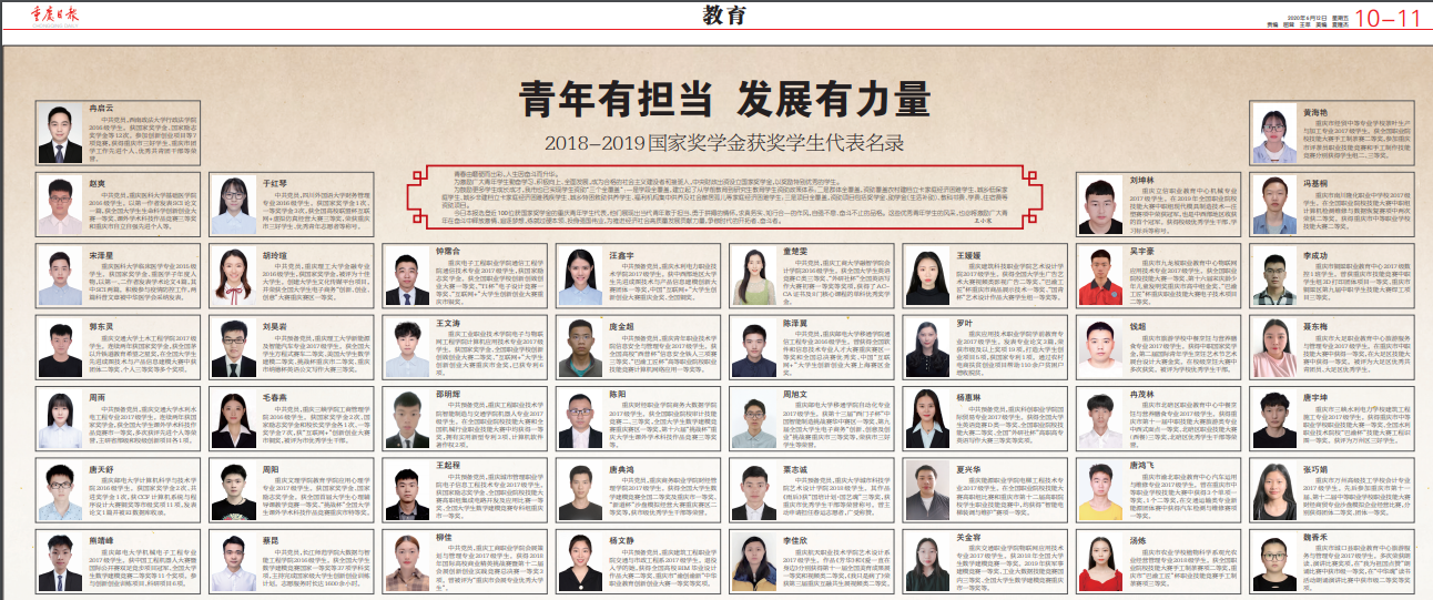 青年有担当,发展有力量!我校2016级ACCA班童楚雯同学荣获2018-2019国家奖学金,并作为获奖代表登上重庆官方媒体。