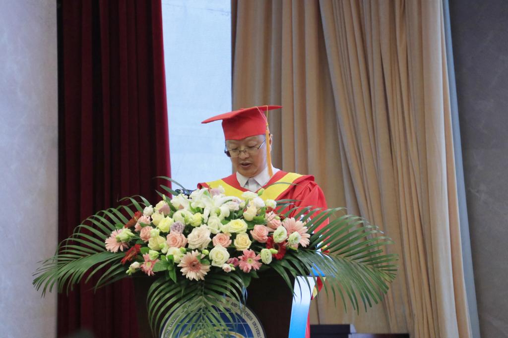 自四面而来,向八方而去,今日学成离别,志在远方,明日愿君归来,仍是少年。2020年6月19日,我校在学术报告厅举行了2020届毕业生毕业典礼暨学士学位授位仪式。党委书记张毅、常务副校长吴华安、副校长沈民、副校长肖肃、校长助理房朝君、校长助理李春雷以及学校学位评定委员会代表出席了本次活动。会议由党委副书记陈龙国主持。