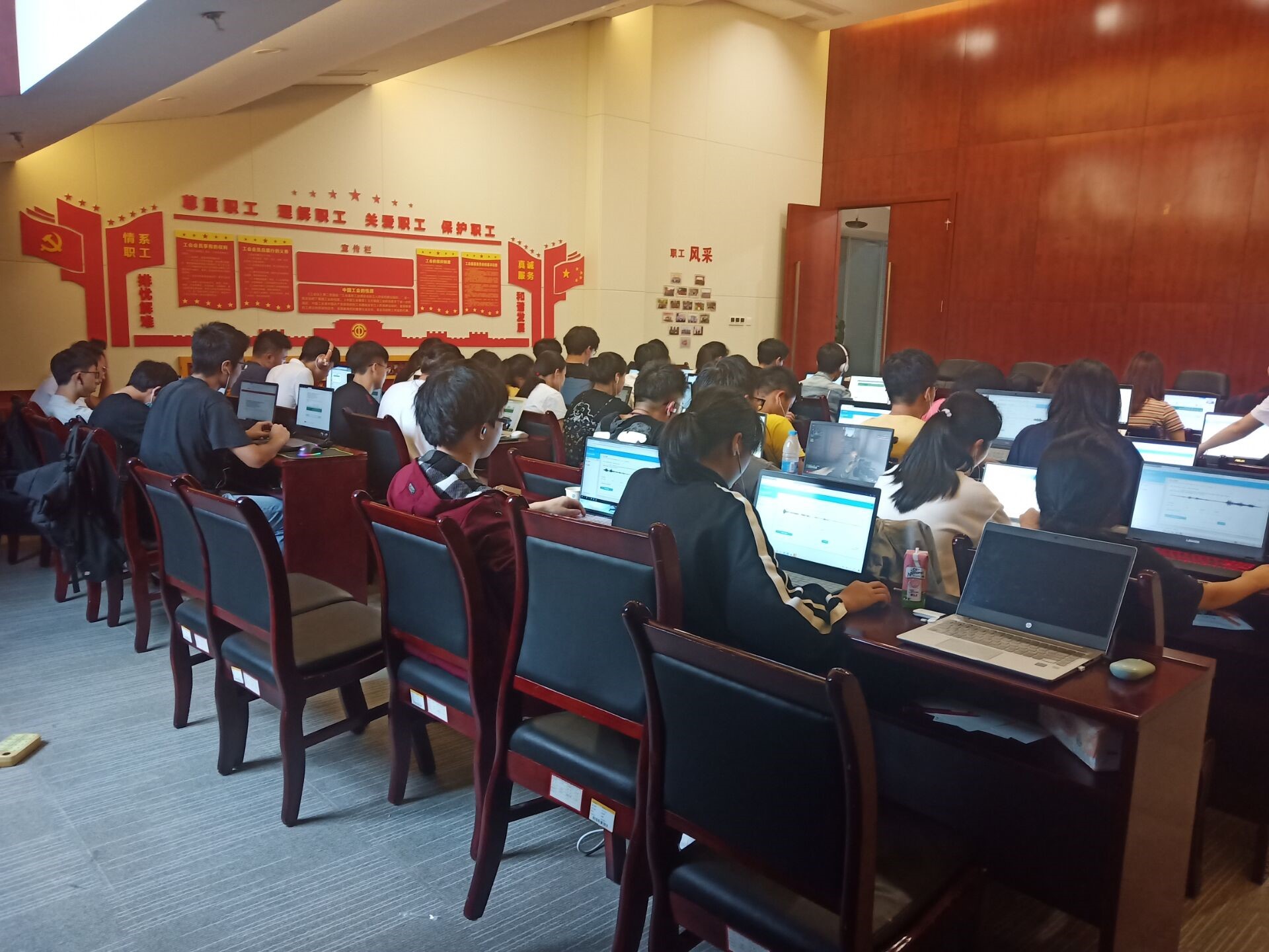 本次项目实施时间长、任务重、工作量大,在为期25天的项目实施过程中,同学们累计完成了几万秒的语音和图文的标注工作,项目期间积极主动,认真负责,互帮互助,最终顺利完成了项目的交付任务。学院将会为参与项目的全体同学颁发标注项目技能证书,同时也会为项目实施期间能力突出,表现优异的同学颁发荣誉证书。为了缓解同学们工作的辛劳,学院院长周启刚代表学院给同学们购买了西瓜以消暑解渴,学院党总支书记王晓云和教学督导唐立力为同学们购买了饮品并到现场对同学们进行了慰问,体现了学院的人文关怀。