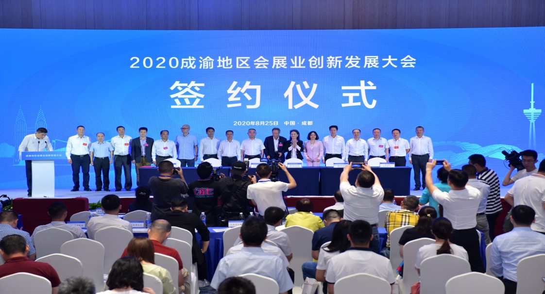 成都市政府副秘书长、办公厅主任廖成珍,中国会展经济研究会会长袁再青,重庆市商务委一级巡视员、重庆市人民政府会展办主任熊林,四川省商务厅副厅长唐燕,四川国际博览集团有限公司董事长、四川省会议展览业协会会长杨庆龙,天津振威展览股份有限公司董事长张学山等分别致辞。150余家成渝会展企业、商协会、机构、高校专家学者代表参加。会上,成都市博览局局长、成都市贸促会会长陈赋发布了《成渝地区会展业合作发展倡议书》。会议同时宣告成立了成渝会展联盟(我校作为发起单位),10个两地合作项目签约落地。