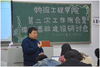 会上,物流工程学院学术带头人张军教授指出,目前各高校在课程思政建设上积极探索,形成了一系列富有成效的工作模式和经验,学院需认真领学《高等学校课程思政建设指导纲要》,全面推进各专业课程思政建设,寓价值观引导于知识传授和能力培养之中,帮助学生塑造正确的世界观、人生观、价值观。