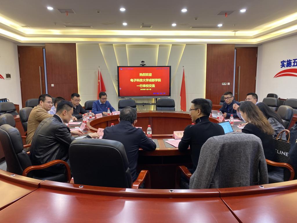 2020年11月12日,电子科技大学成都学院副校长陈春发率队前来我校探讨产教融合事宜,学校副校长沈民和讯飞人工智能学院相关领导负责接待,并在会议中深入探讨。