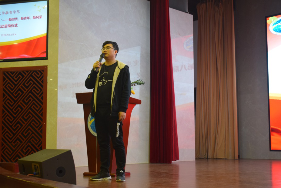 为全面贯彻党的教育方针,深入学习贯彻习近平总书记关于教育的重要论述,落实立德树人根本任务,构建课程思政与思政课程同向同行育人体系,着力培养德智体美劳全面发展的社会主义建设者和接班人,我校于2020年11月18日中午在教学楼学术报告厅成功举办第八届“播种道义,收获温馨”——新时代、新青年、新风采系列德育活动启动仪式。本届德育活动由马克思主义学院、校党委宣传部、党群工作部、学生工作部、校团委和公共管理学院联合举办,由公共管理学院具体组织承办。