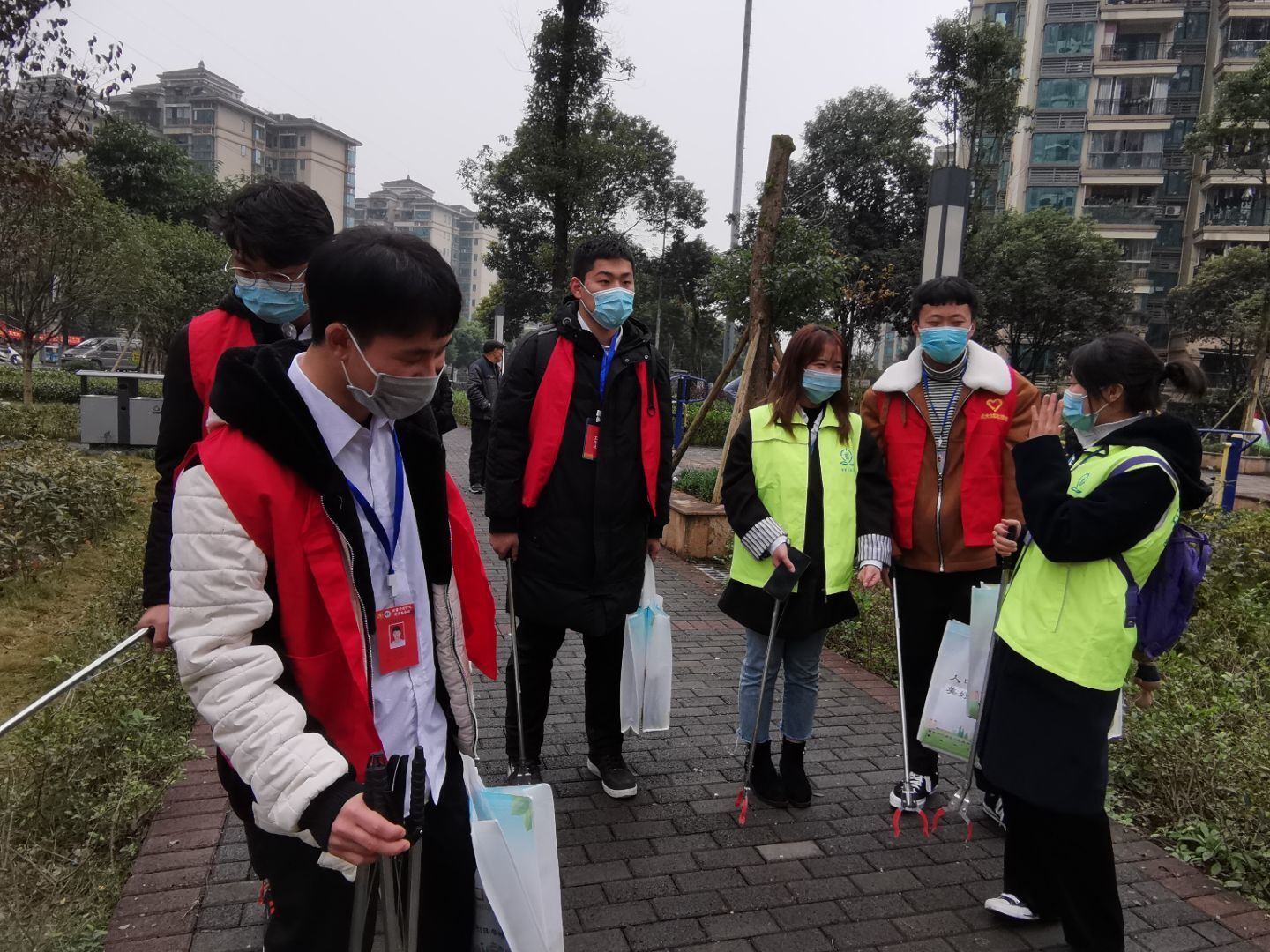 我院学生志愿者在社区党员同志的带领下,走进街道、深入群众,进行清洁街道及垃圾分类知识宣传工作。为给社区居民起到模范带头作用,党员同志在前往宣传目的地的途中捡拾垃圾并分类投放,向过路行人讲解垃圾分类的知识,用实际行动带动群众了解并加入到环保和垃圾分类当中来。