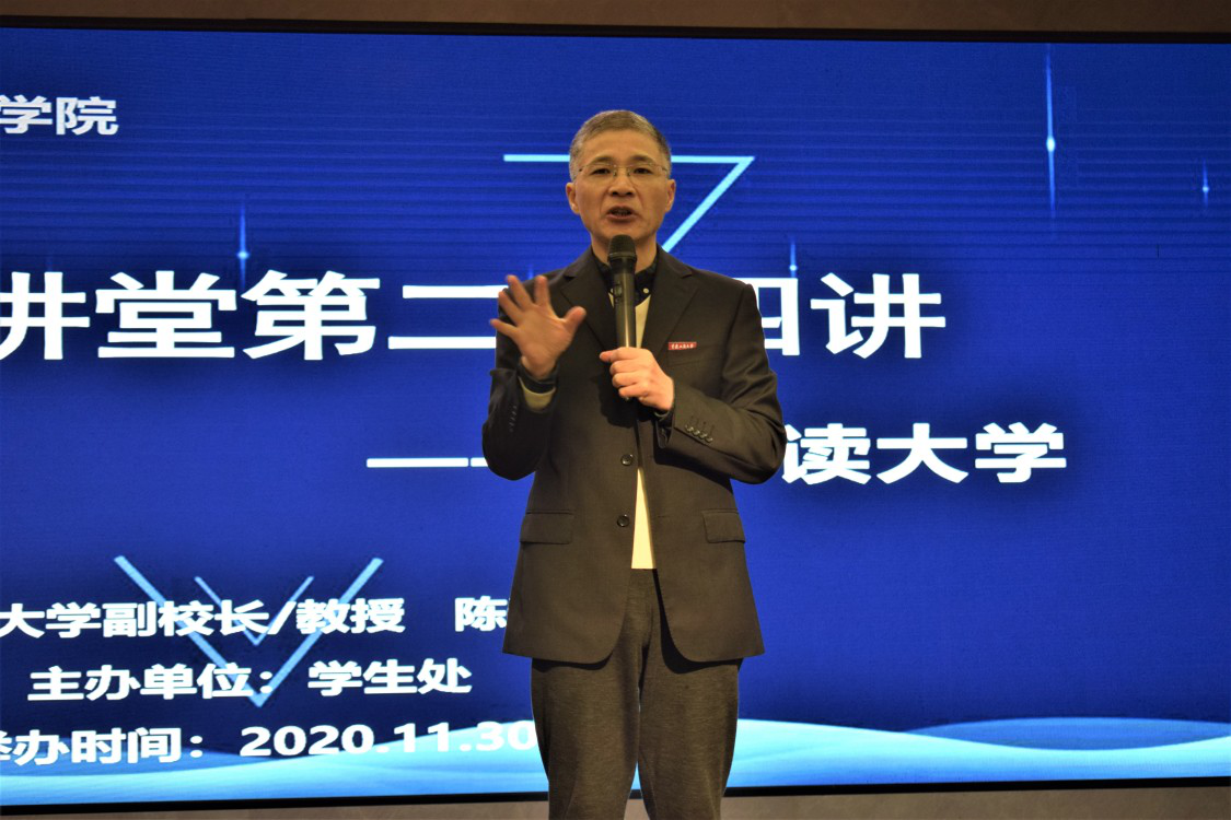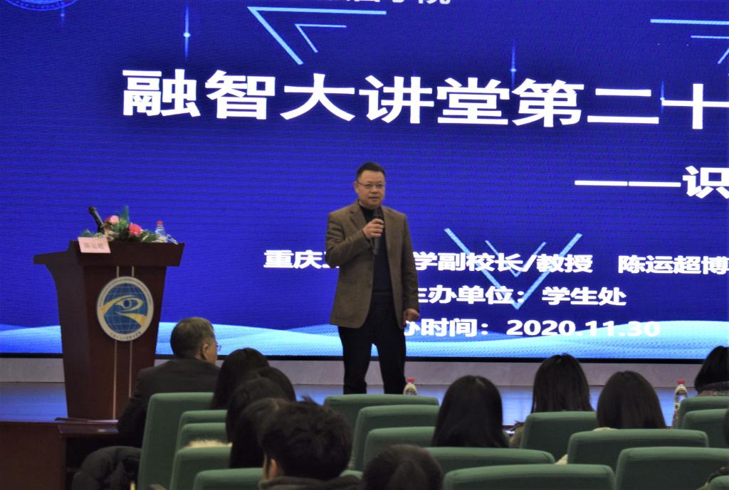 2020年11月30日19:00由学生处主办的“融智大讲堂”第二十四讲——“识、读大学”专题讲座学术报告厅顺利举行。本次讲座由重庆工商大学副校长陈运超教授主讲,校党委副书记陈龙国主持,全校200余名师生参加了本次讲座