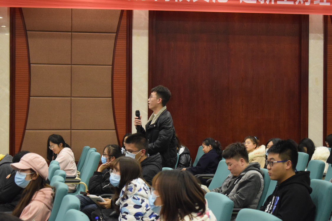 在提问互动环节,陈运超教授对同学们提出的问题进行了耐心细致的解答并建议大一学生从以下四个方面充实丰富自己的大学生活:一是着眼现实,从小事做起;二是学会思考,培养发现问题、解决问题的能力;三是学会利用现代的信息技术突破现有的资源困境,实现全面发展;四是提倡大家在自信的前提下突破固有的思维,实现跨越式的成长