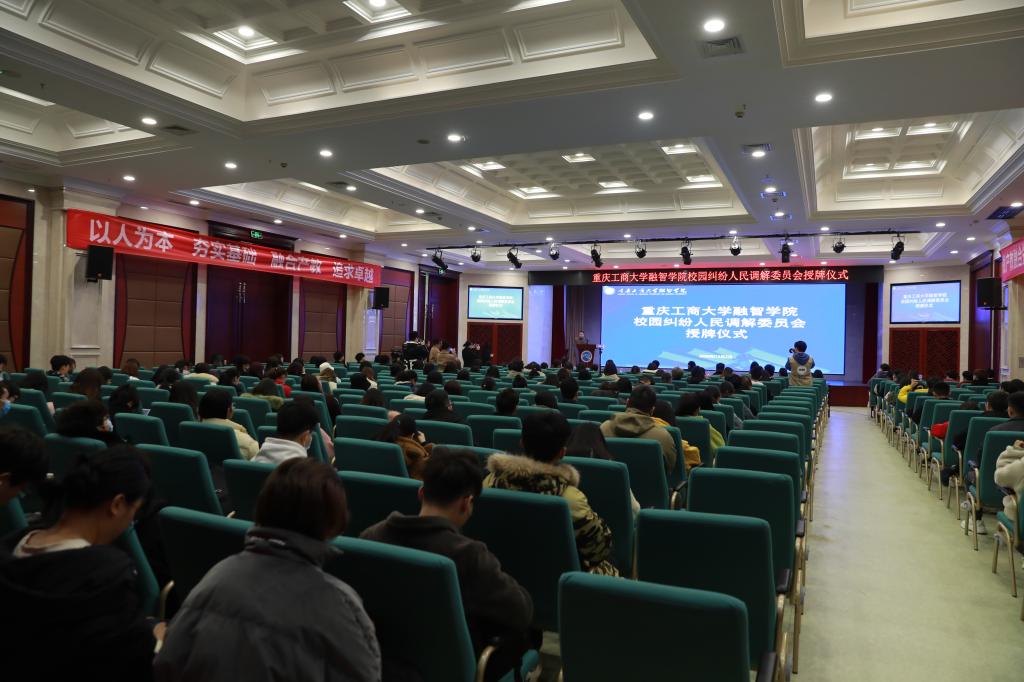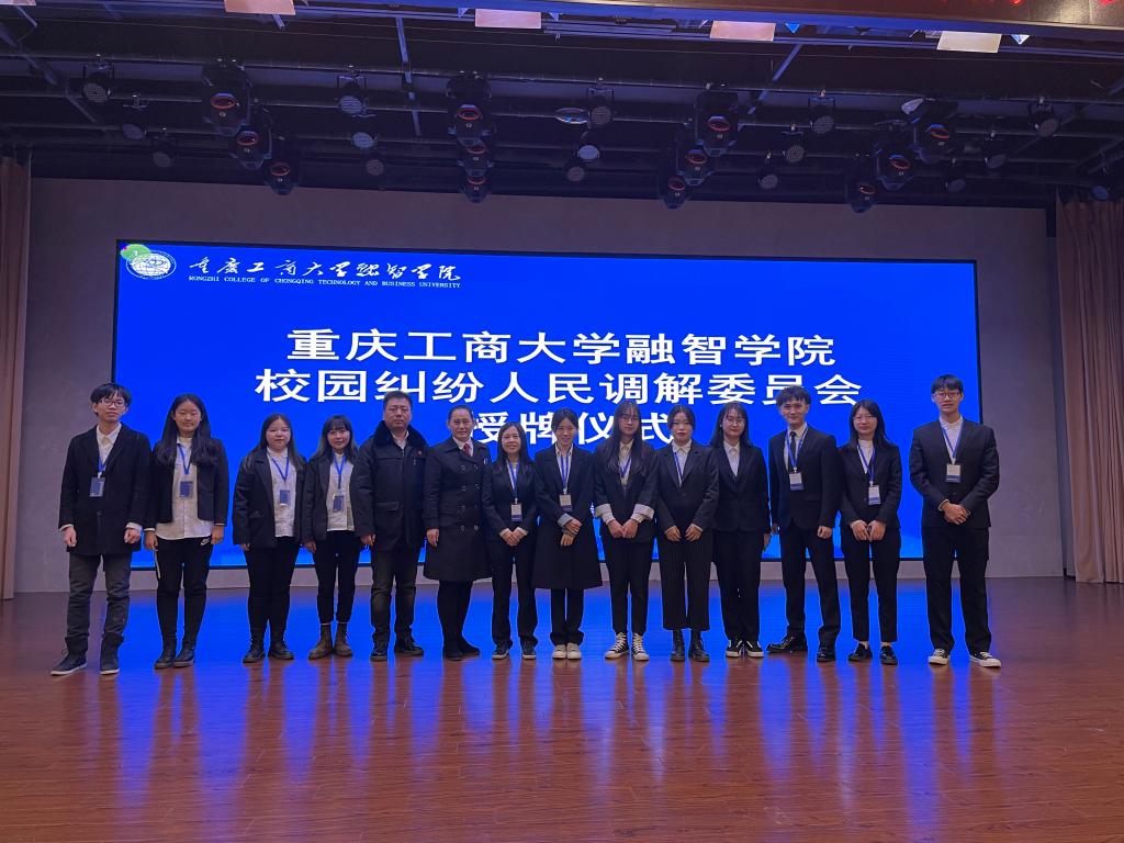 为维护校园和谐稳定,提升校园纠纷解决效率,2020年12月2日,重庆工商大学融智学院校园纠纷人民调解委员会授牌仪式在我校学术报告厅隆重举行,标志着我市首个驻校人民调解委员会正式成立。我校双创项目“律管家”获授权运行校园纠纷人民调解委员会,这是国内首次有创业团队获授权运行人民调解委员会,是重庆市巴南区政法各部门联合我校及我校创业项目“律管家”在政府-高校-师生多方共建共治共享领域的新探索,也是我校双创项目在校政合作领域的一次新突破。