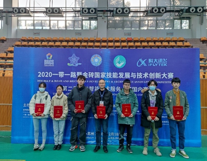 2020年12月20日,2020一带一路暨金砖国家技能发展与技术创新大赛之第二届人工智能技术服务大赛国内赛闭幕式在苏州市职业大学举行。我校讯飞人工智能学院团队由专职老师姜抗带领18级空信专业6名学生(陈宏、岑徐节、陈香、吴泽杰、唐小林、李菲菲)组成两支队伍参加本次大赛,并分别斩获二等奖和优秀奖。